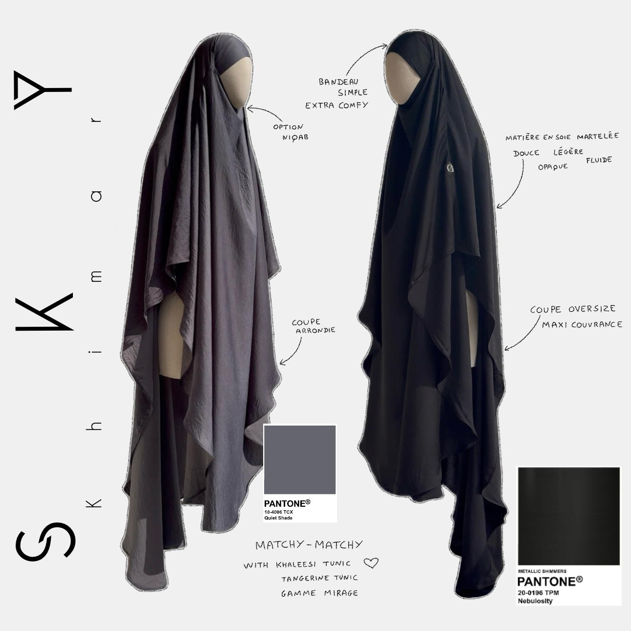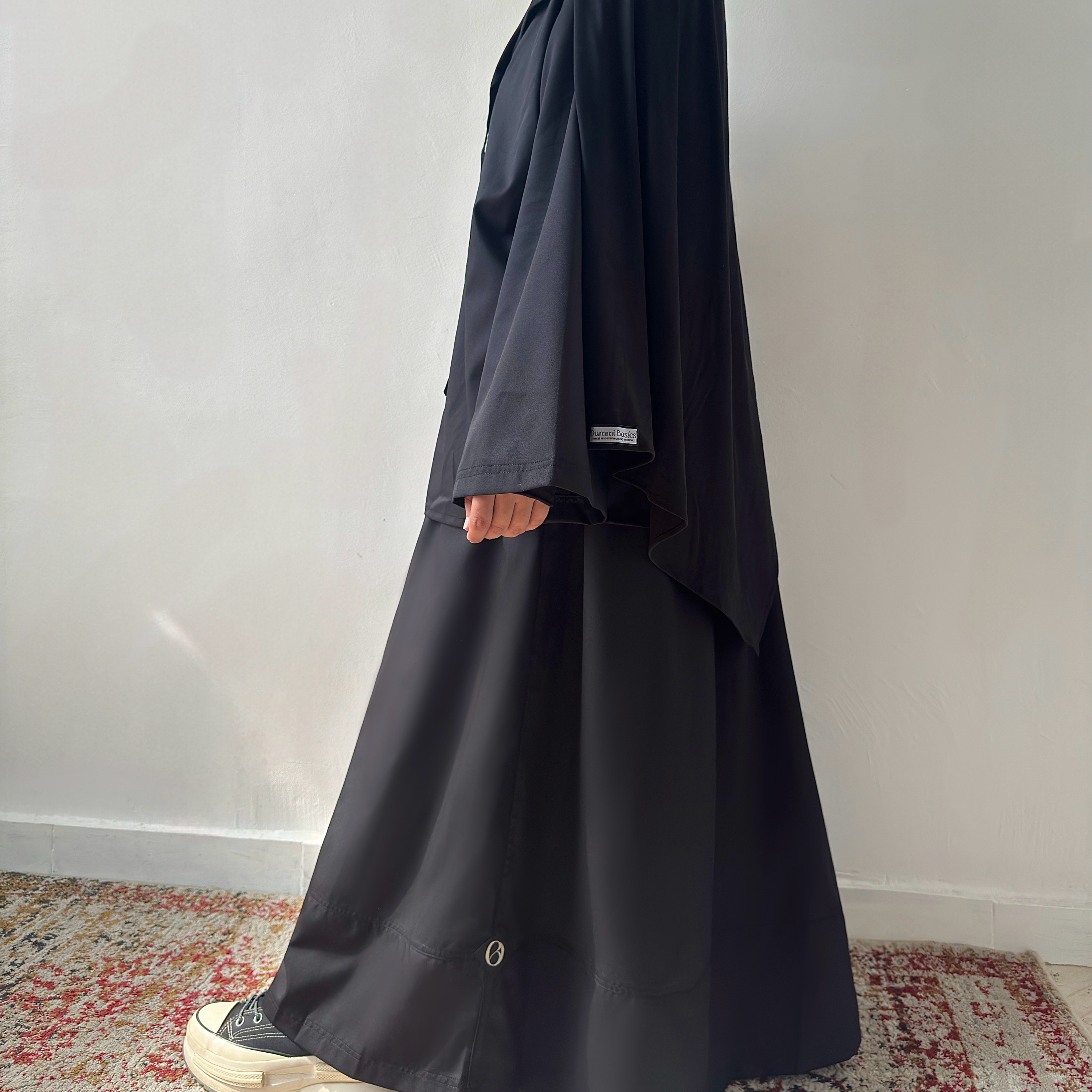 Le jilbab se décline en modèle une pièce ou deux pièces accompagné d'une jupe. Le jilbab est proposé dans un noble tissu en crêpe premium.