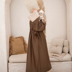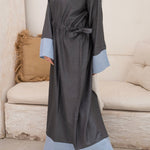 L’harmonie entre deux couleurs qui s’allient à la perfection dans un tissu doux et agréable. Une inspiration venue de Russie, une ceinture ajustable à la taille agrémentée d’un joli noeud.