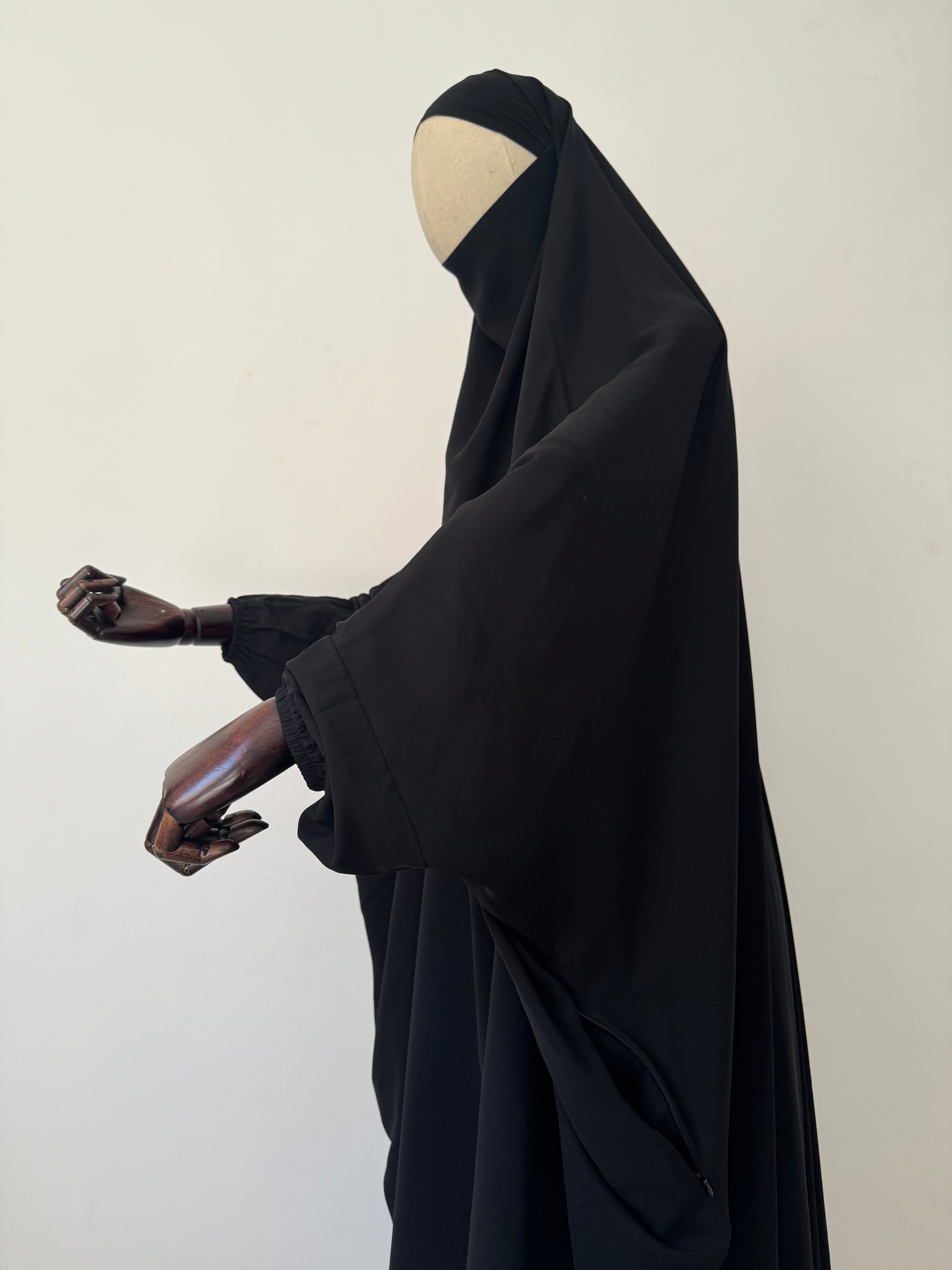 Ce jilbab 1 pièce à la coupe papillon / saoudienne, vous assure une totale liberté de mouvement et une couvrance optimale au quotidien.