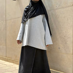 Loin des vêtements trop ajustés, la tendance oversize s’inscrit dans une volonté de liberté et de simplicité. Ce t-shirt à manches longuesprivilégie une coupe ample, garantissant une aisance totale et un confort immédiat. Il répond parfaitement aux attentes de celles qui recherchent un style modeste, couvrant élégamment la silhouette tout en restant actuel et décontracté. Le résultat ? Un équilibre subtil entre modernité et respect des codes traditionnels, pour un look naturellement élégant.