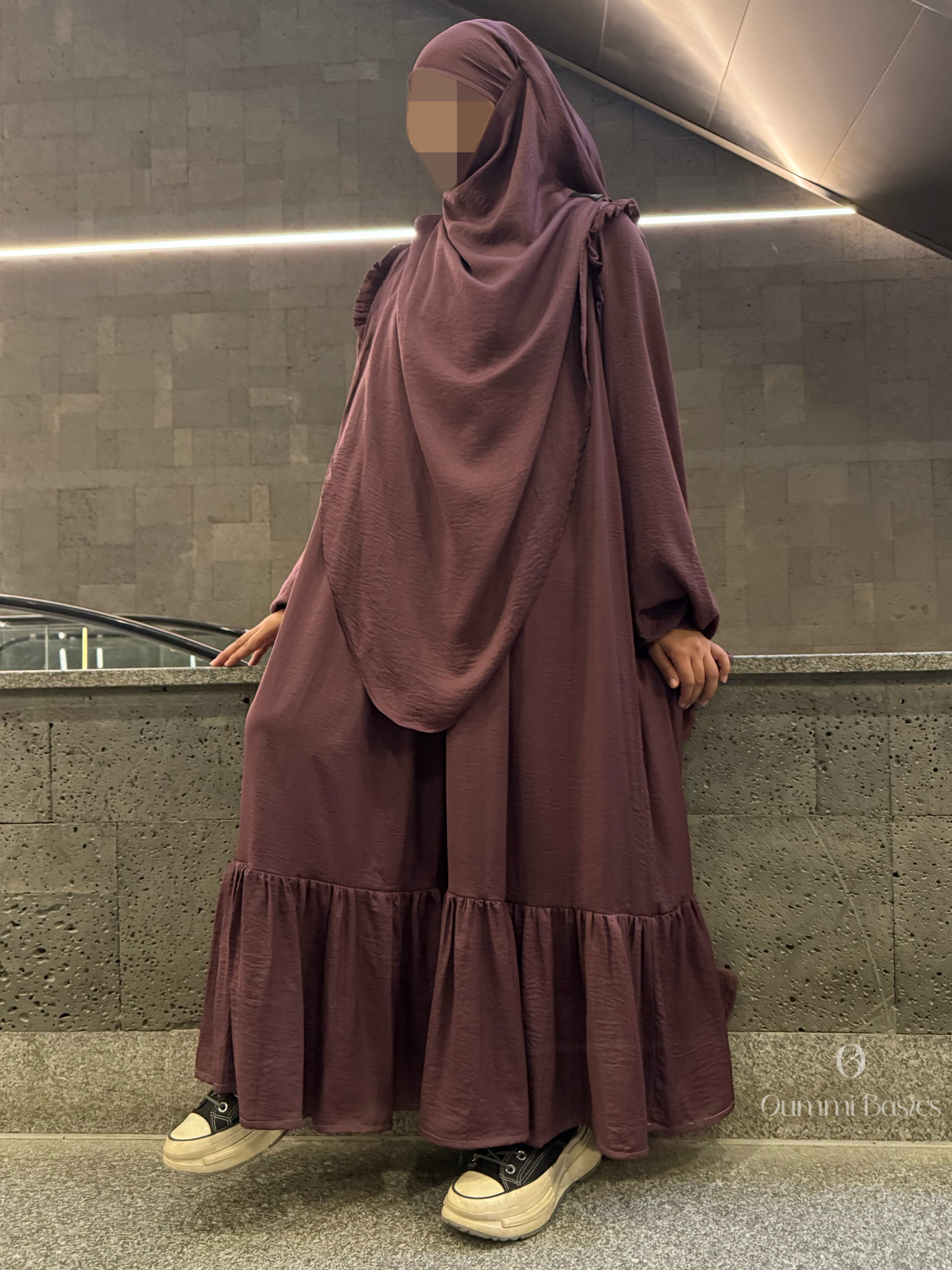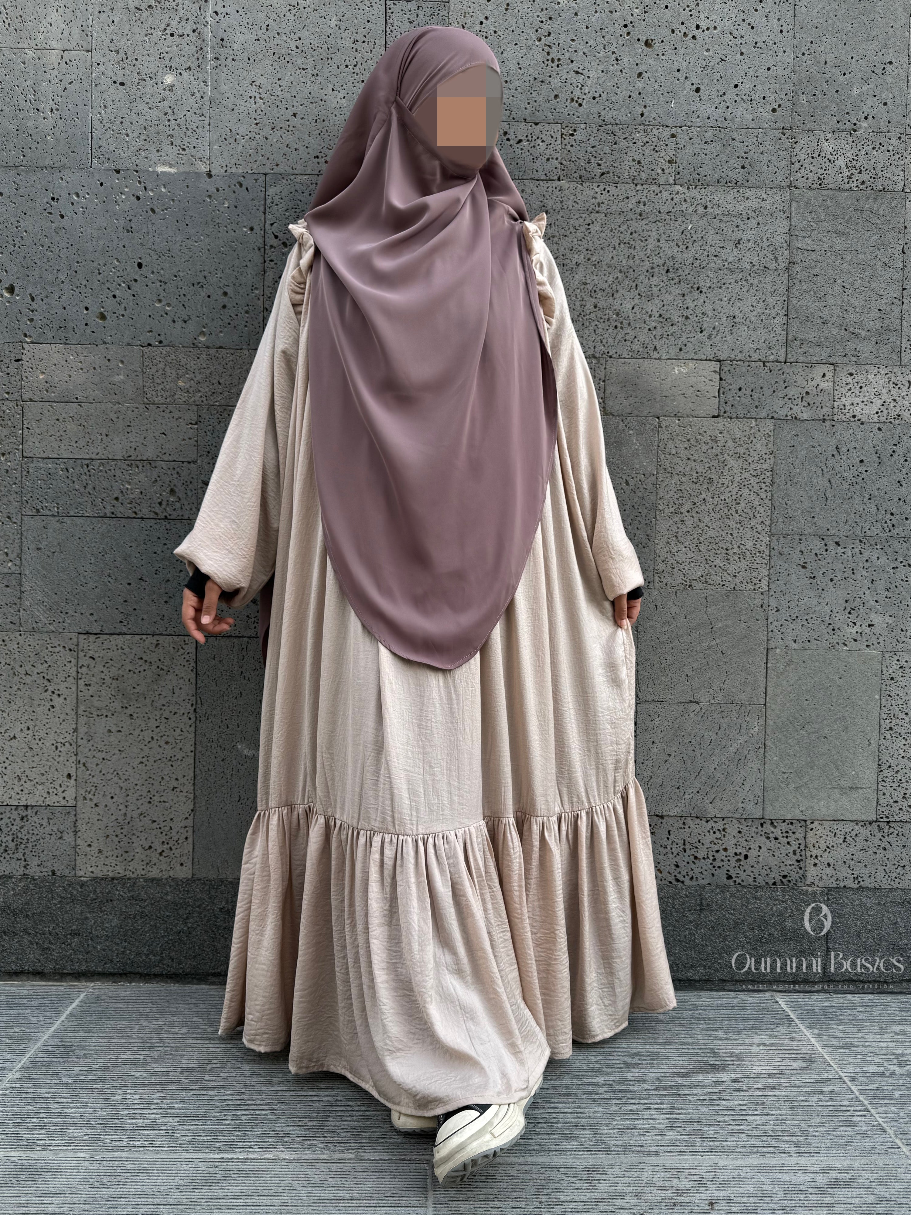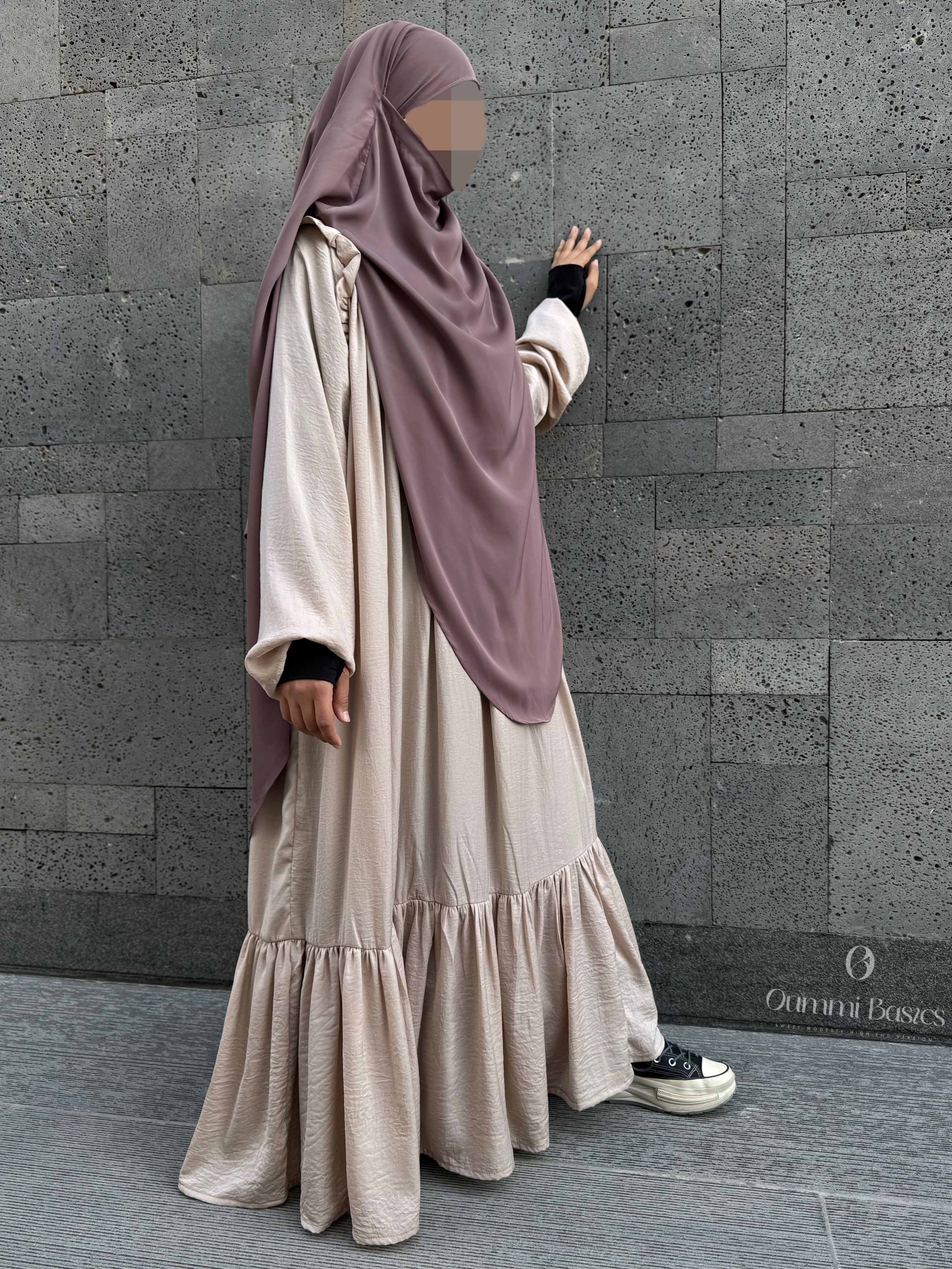 Associée à un khimar, une étole légère ou d’autres accessoires, la robe s’intègre harmonieusement dans toutes les garde-robes. Il suffit de quelques touches personnelles pour transformer votre tenue selon vos envies et les occasions.