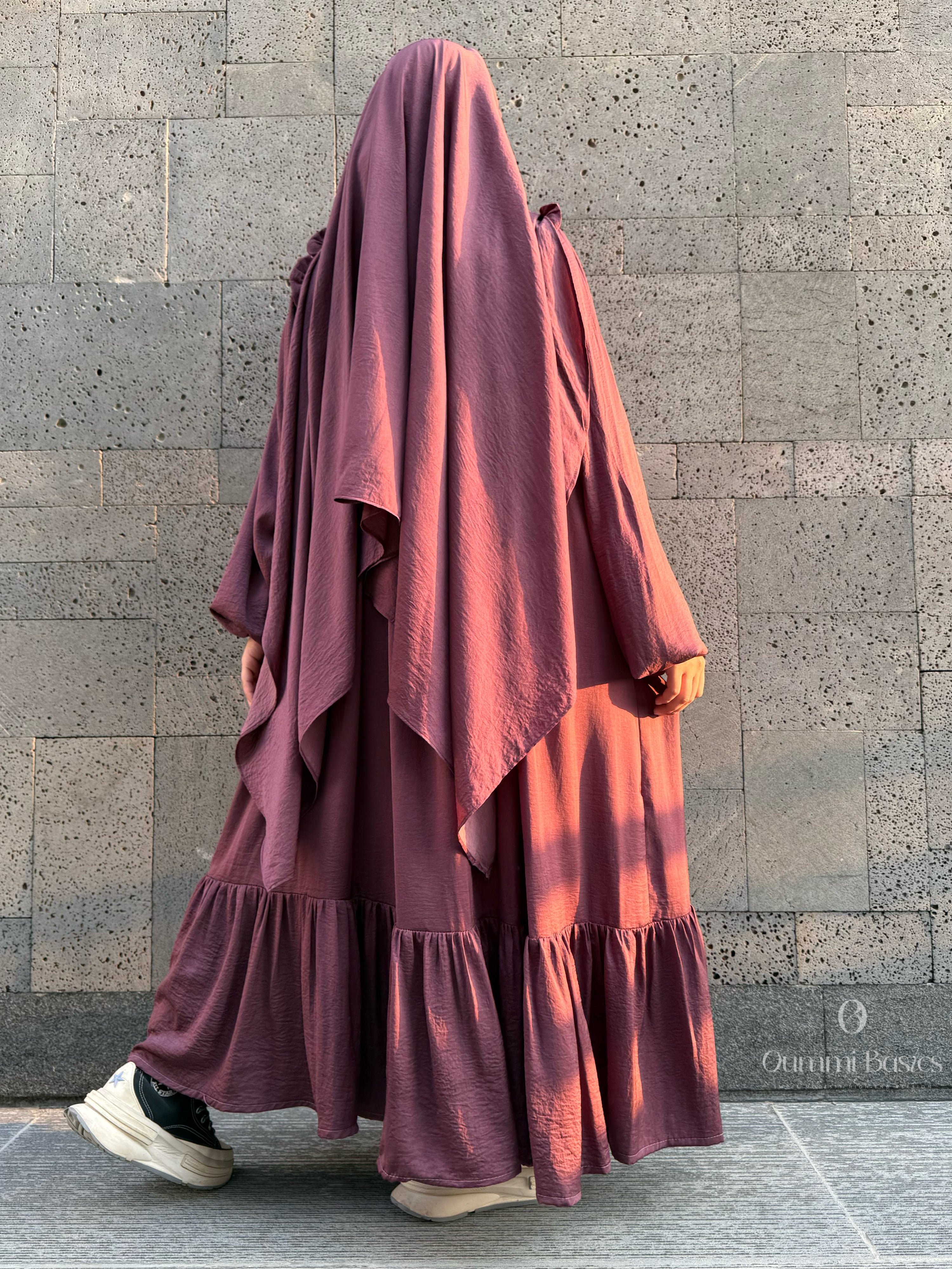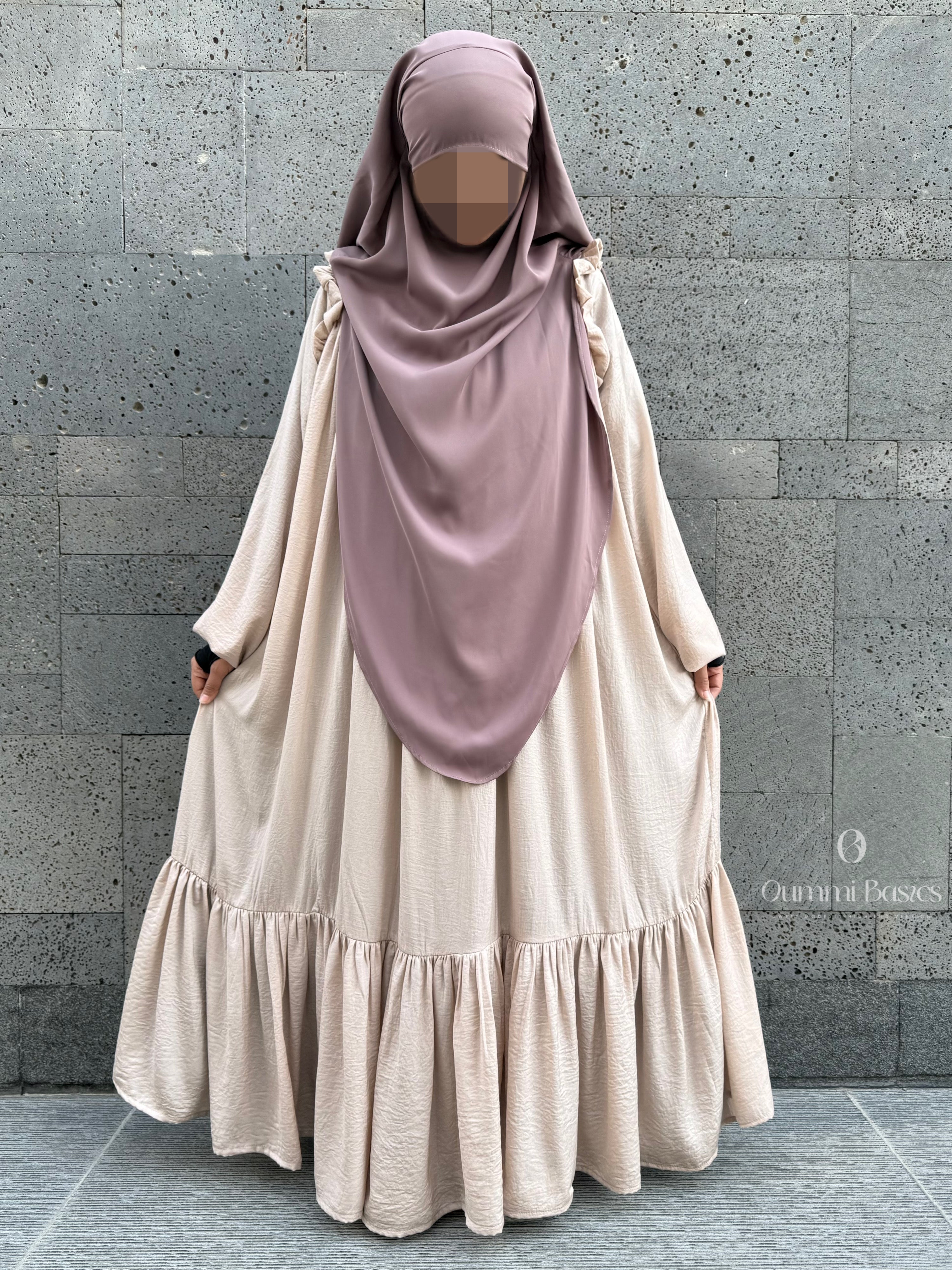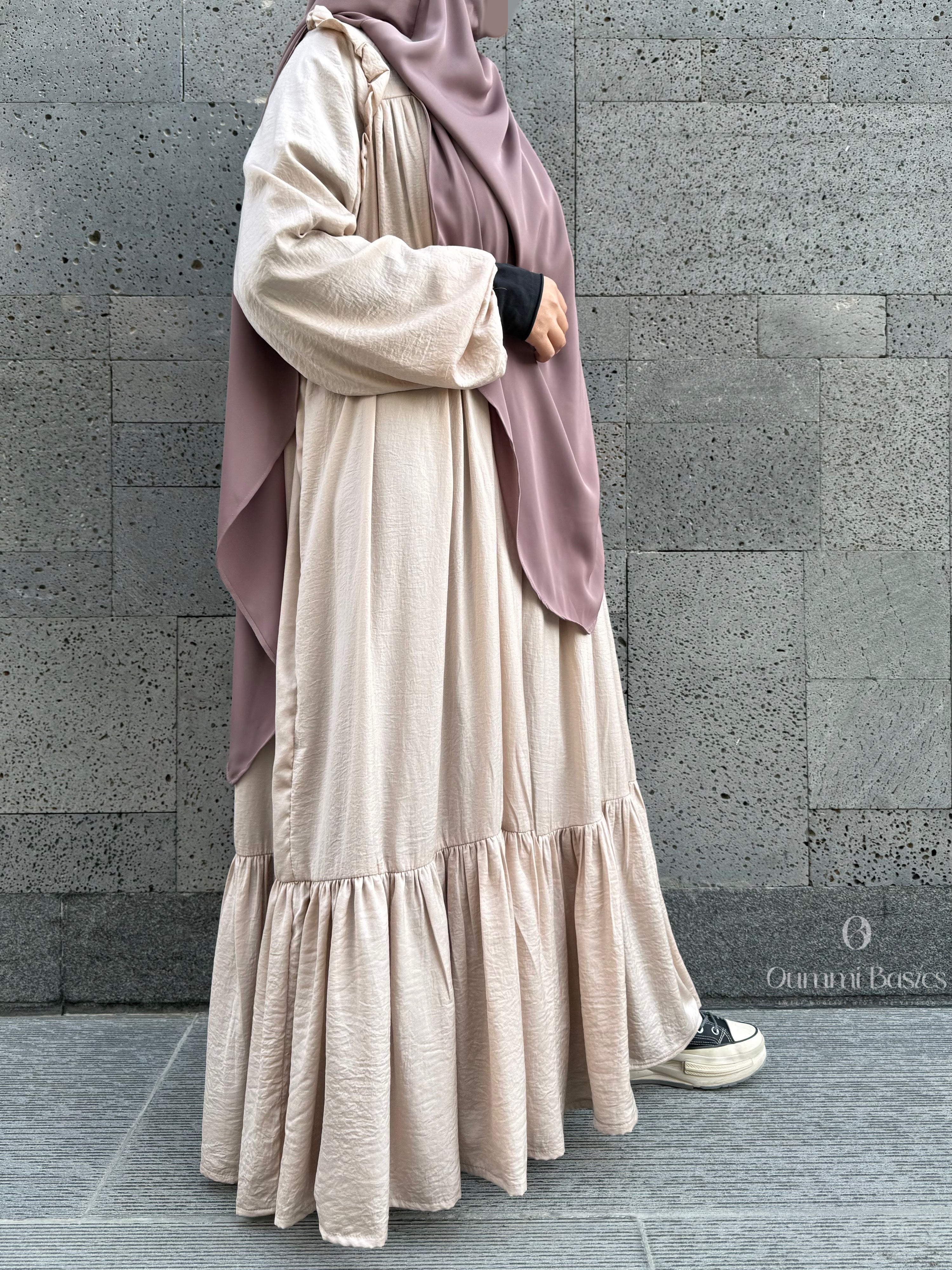 Associée à un khimar, une étole légère ou d’autres accessoires, la robe s’intègre harmonieusement dans toutes les garde-robes. Il suffit de quelques touches personnelles pour transformer votre tenue selon vos envies et les occasions.