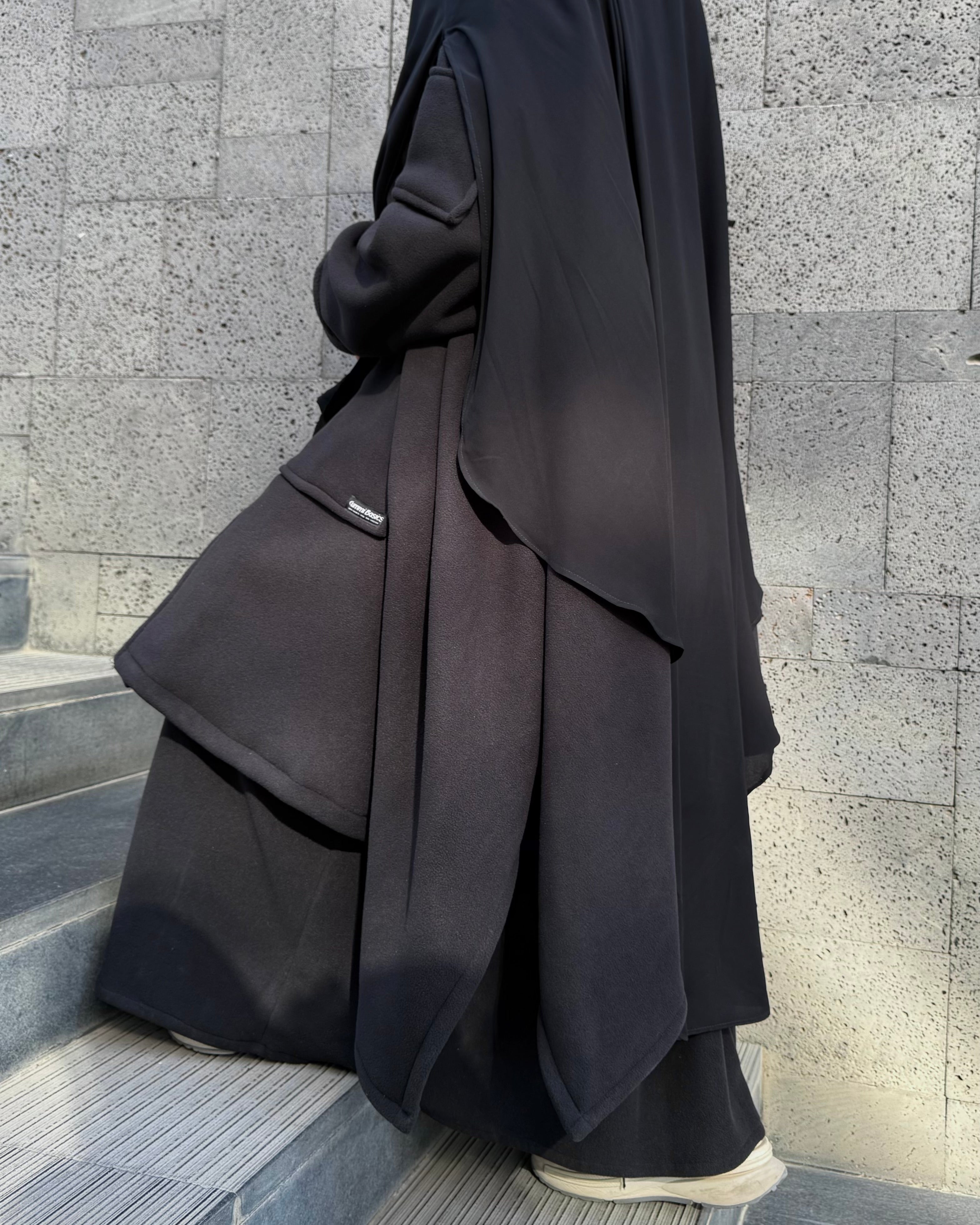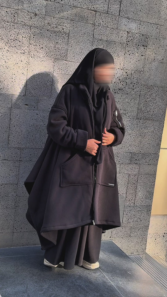 Oui, totalement. L’ICEBERG JACKET a été pensée pour les femmes voilées. Sa capuche est amovible, ce qui te permet de la porter au-dessus ou en dessous de ton voile, selon ton confort et la météo.