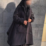 • Maxi capuche amovible, ajustable, permettant de porter la veste de deux façons :