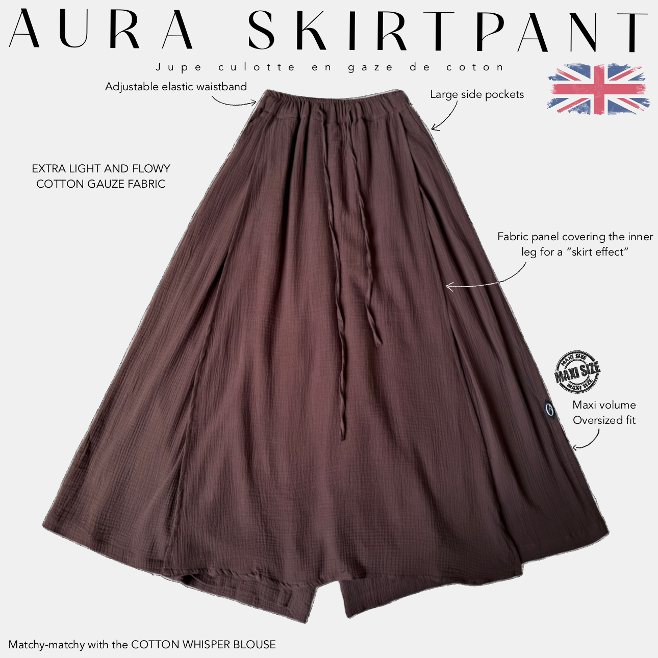Lorsque l’on pense à une tenue estivale idéale, la jupe culotte en gaze de coton vient immédiatement à l'esprit. Cette pièce unique, telle que l’AURA SKIRTPANT, allie esthétique et confort comme peu d'autres vêtements. Conçue pour offrir une alternative moderne et pratique aux traditionnelles jupes et shorts, elle figure parmi les indispensables de la garde-robe.