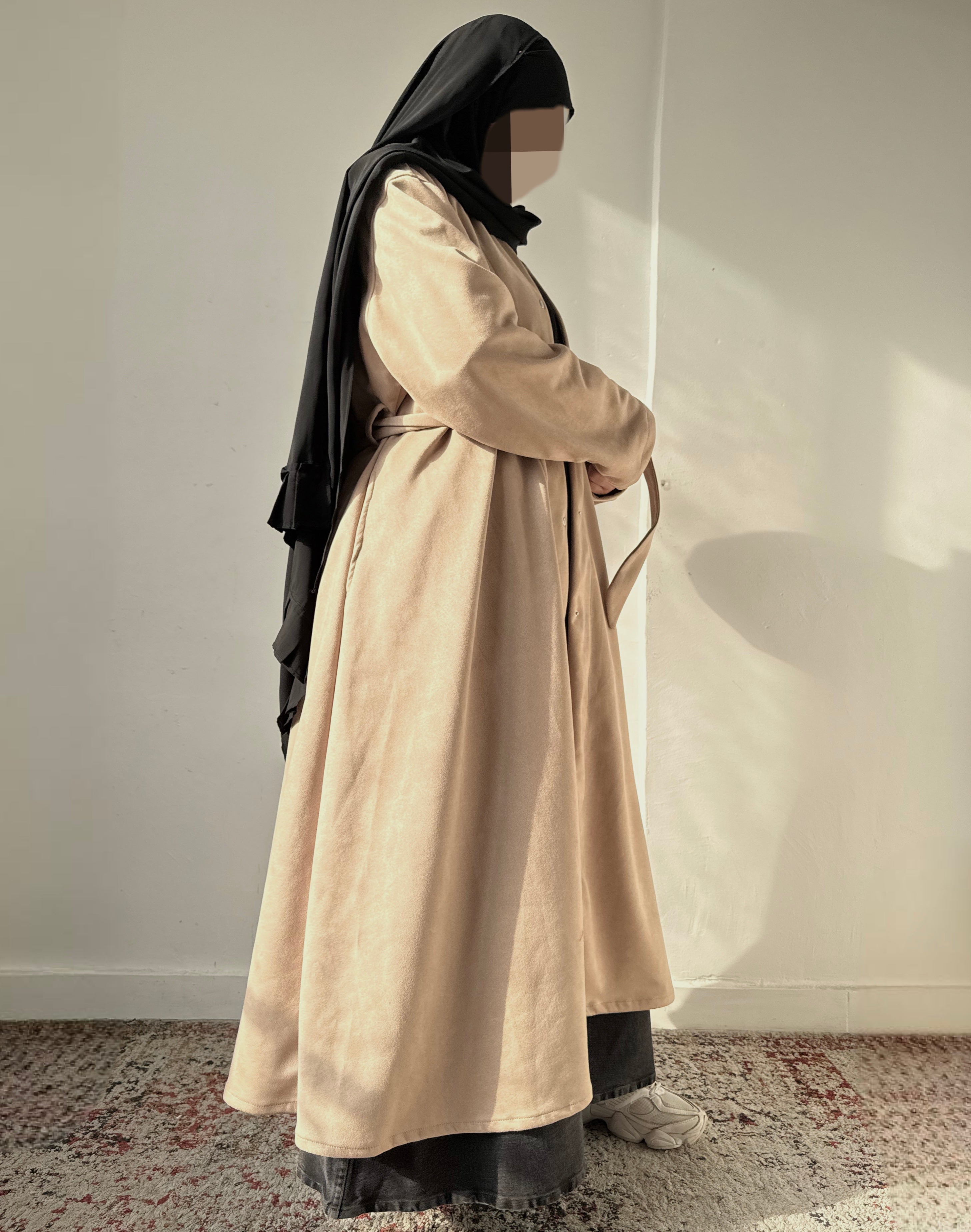 Oui, la suédine semi-épaisse retient bien la chaleur tout en restant respirante. Il est idéal pour l’automne, le début de l’hiver ou les soirées fraîches. En cas de températures plus basses, il peut se superposer facilement sur une maille épaisse ou une abaya doublée.