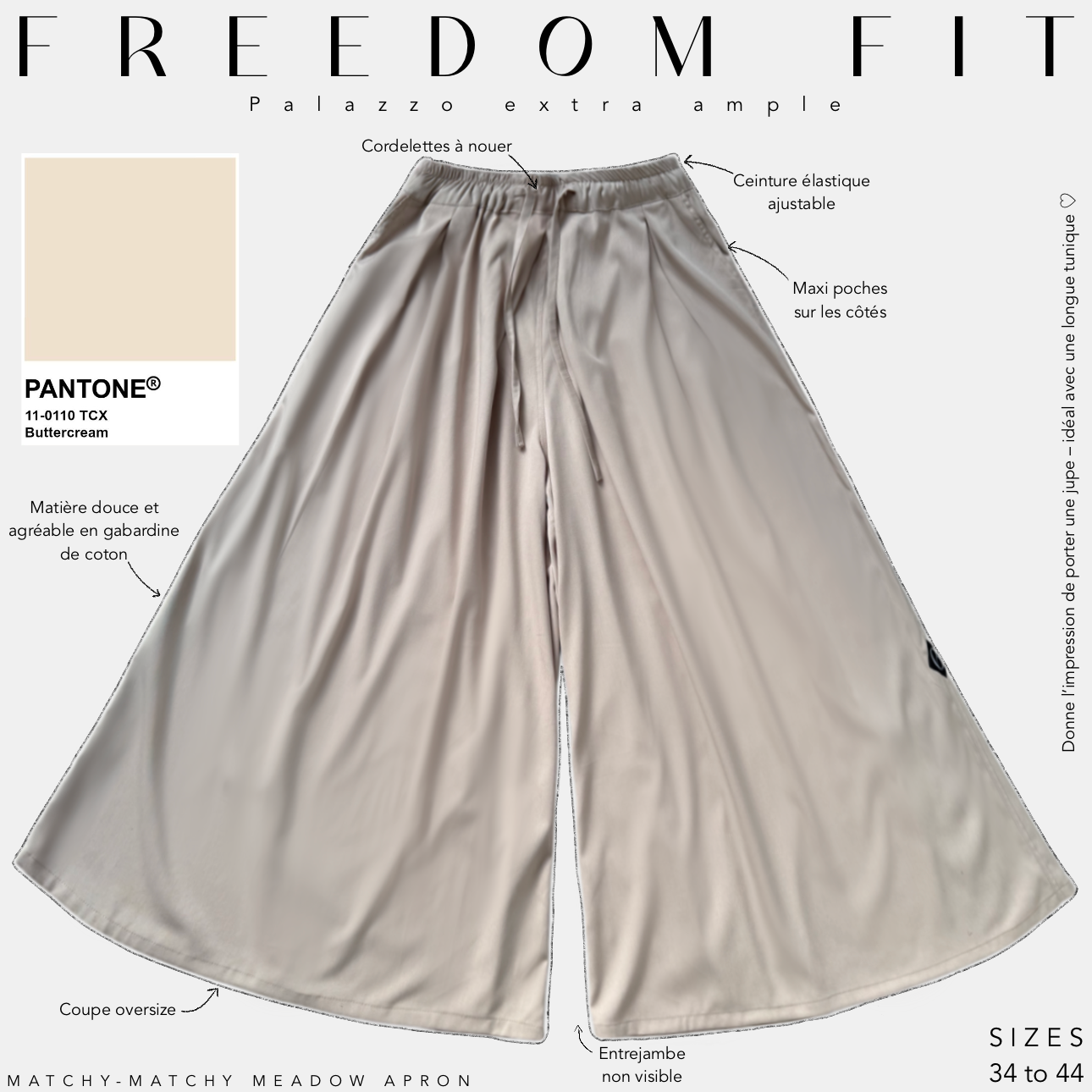 • Parfait si tu aimes porter ton palazzo long, remonté, et/ou qu’il couvre complètement les pieds.