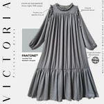 La coupe évasée de la Victoria ne serait pas complète sans ses détails fonctionnels : un zip au dos permet de l’enfiler facilement, tandis qu’un zip horizontal ultra-discret, caché dans la couture, assure une compatibilité parfaite avec l’allaitement. La discrétion du système garantit autant de praticité que d’élégance, facilitant la vie des mamans tout en préservant la pudeur.