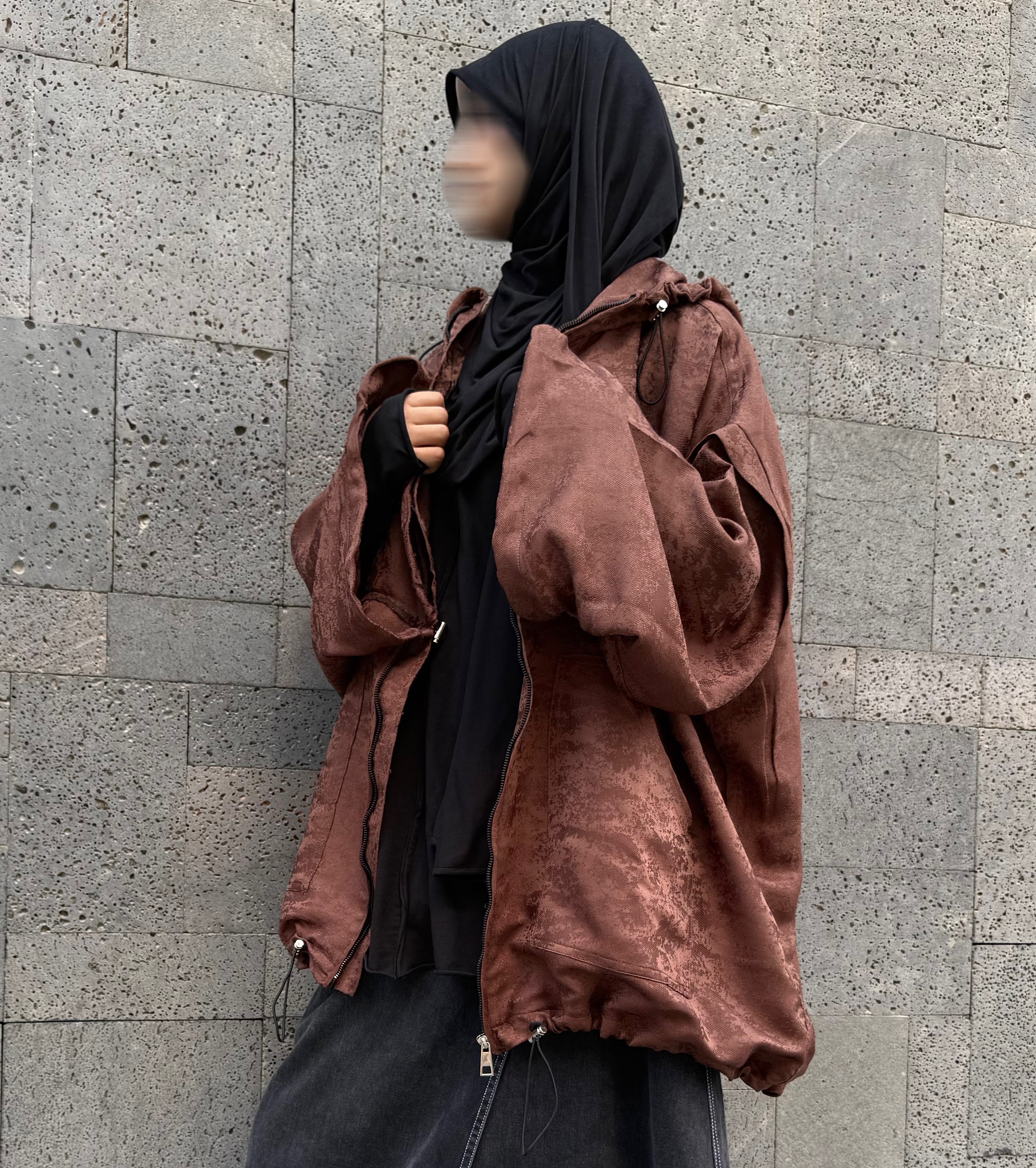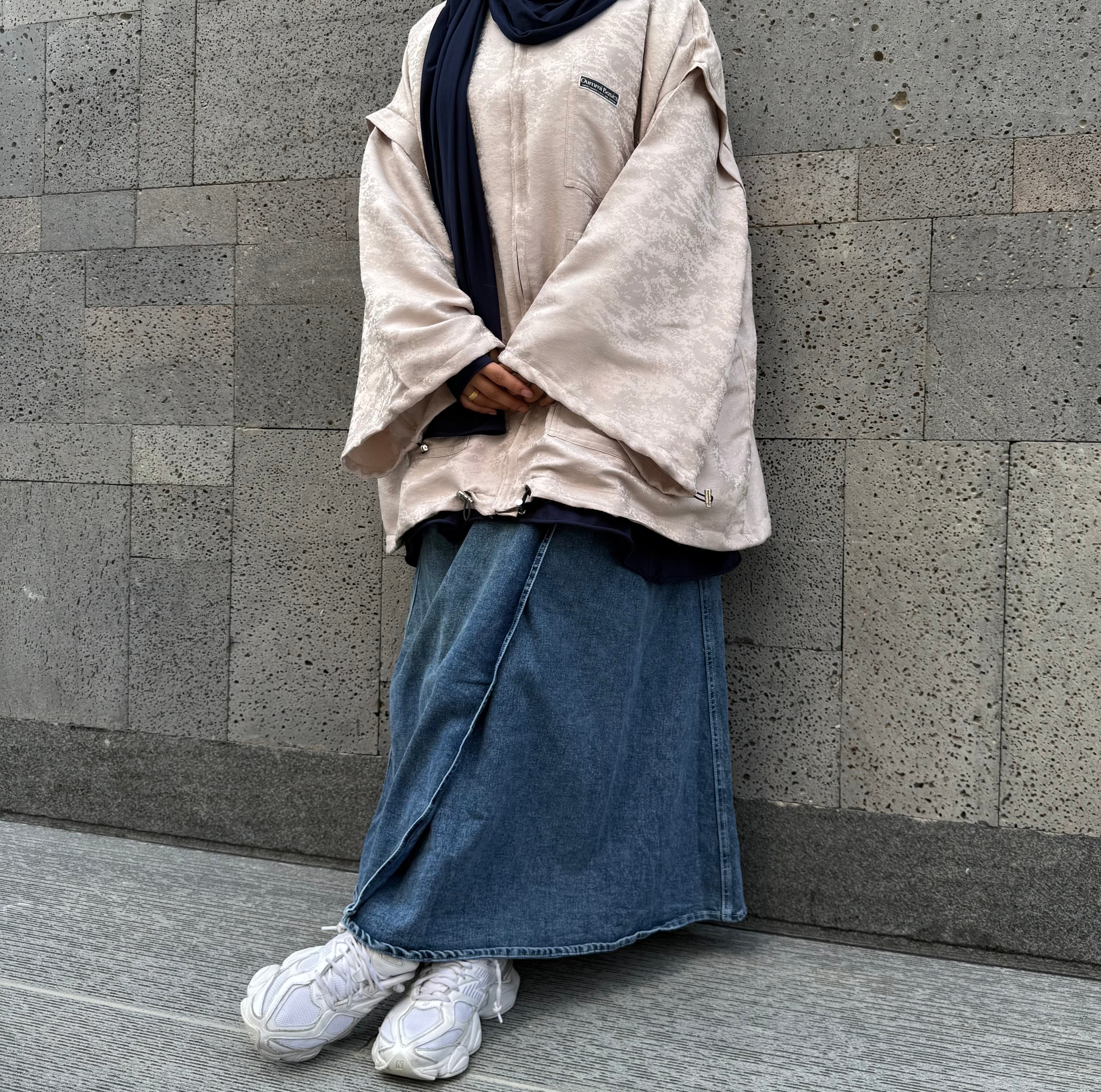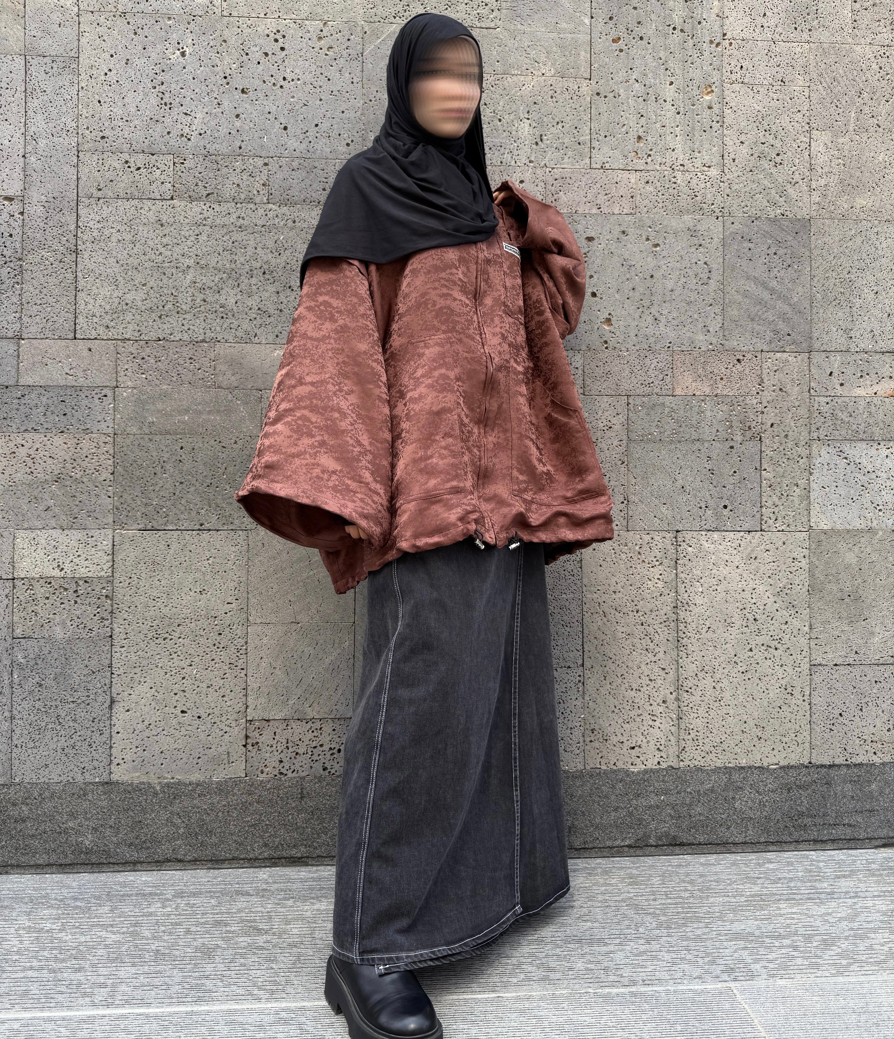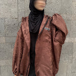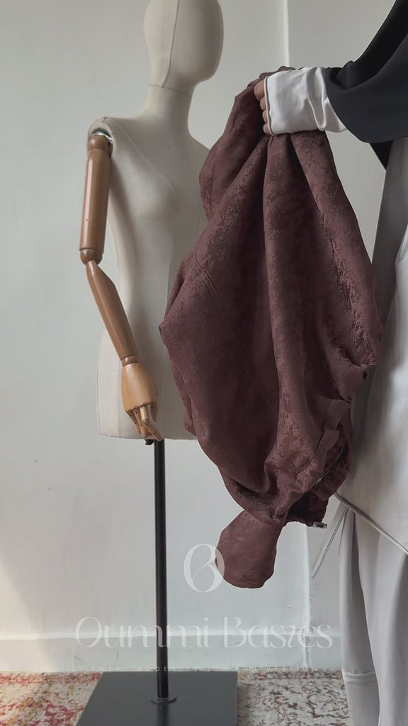 La veste oversize en brocard est idéale pour les occasions où une touche d'élégance est requise, telles que les fêtes, les cérémonies et les événements formels. Pour l'aïd, elle constitue un excellent choix car elle allie modestie et sophistication. Au-delà de ces événements, elle peut également être portée dans des contextes professionnels pour donner un twist chic à une tenue classique, ou même lors de sorties décontractées pour injecter une dose de glamour.