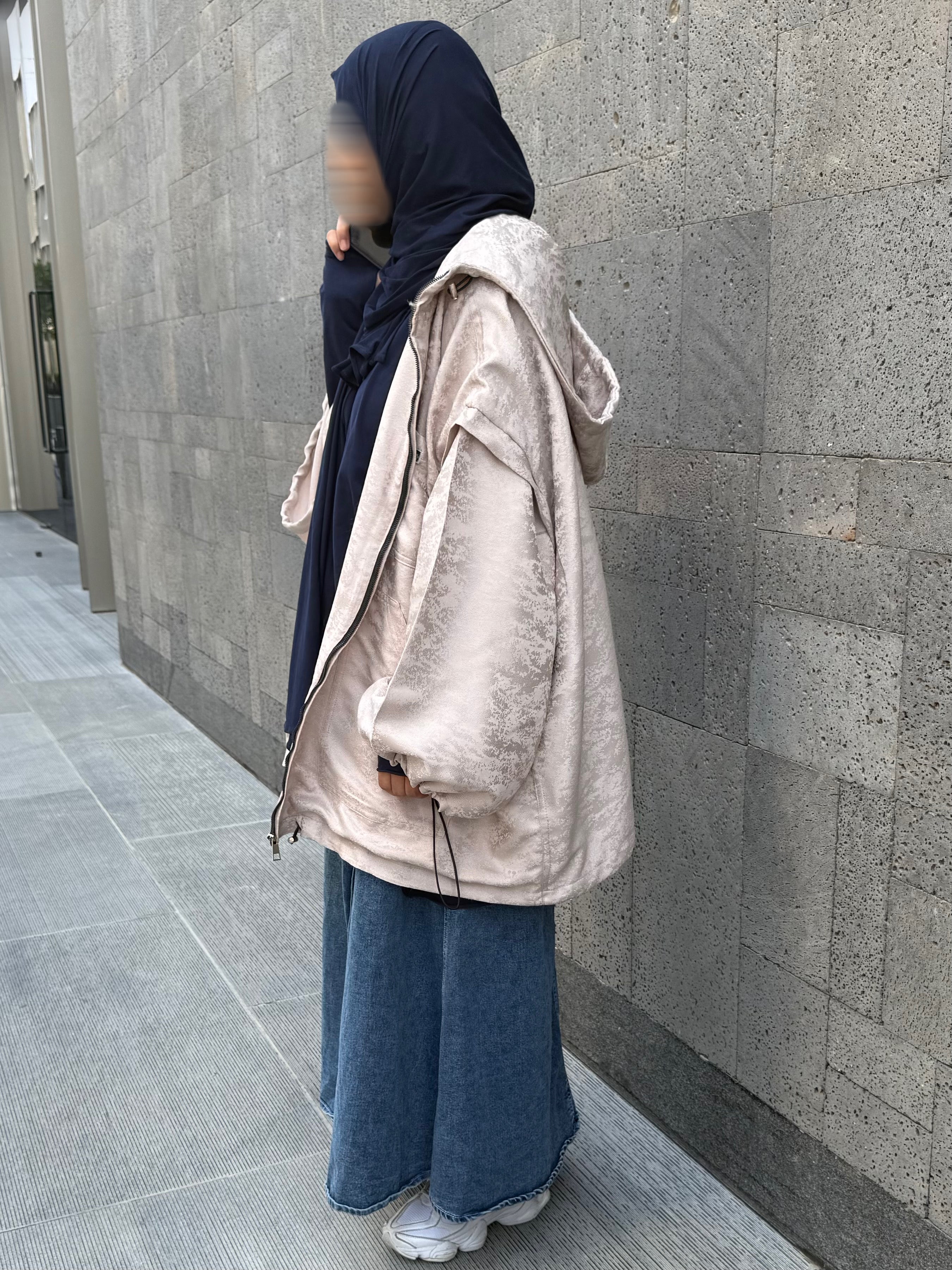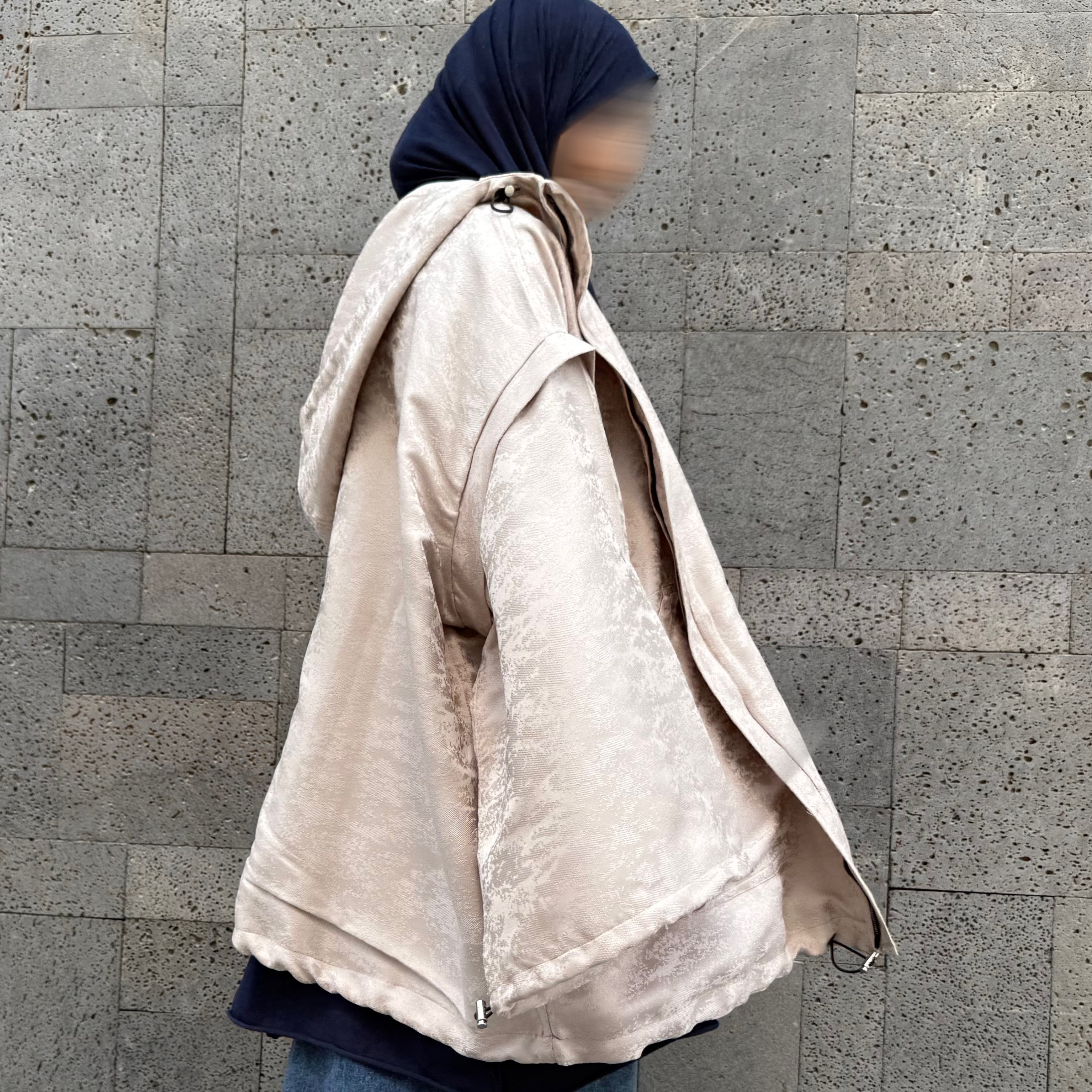 Cette veste mi-longue ajustable est parfaite pour celles et ceux qui recherchent une pièce versatile. Avec sa maxi capuche et ses manches ajustables, elle s'adapte facilement à différentes morphologies et occasions. Les maxi poches ajoutent une dimension pratique. Idéale pour célébrer l'aïd, un évènement ou tout simplement apporter sa touche sur vos tenues quotidiennes, elle permet de combiner modestie et raffinement.