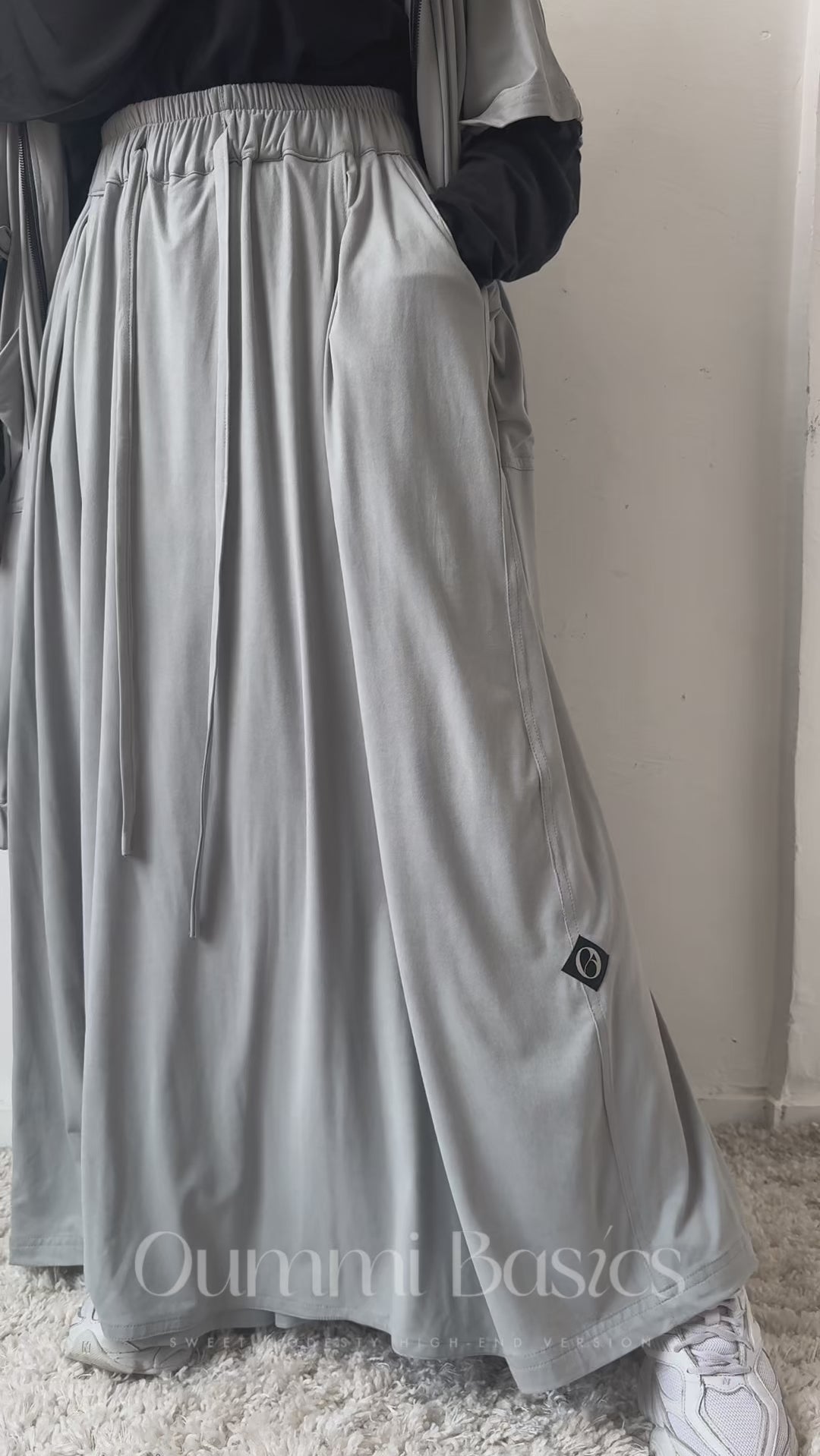 Cette veste mi-longue se porte seule ou associée à d’autres pièces amples, grâce à sa matière fluide et sa couleur neutre. L’association la plus harmonieuse reste avec la jupe-culotte MOVE SKIRTPANT coordonnée, mais rien n’empêche de la glisser sur un pantalon ample, une abaya légère ou une robe t-shirt mi-longue.