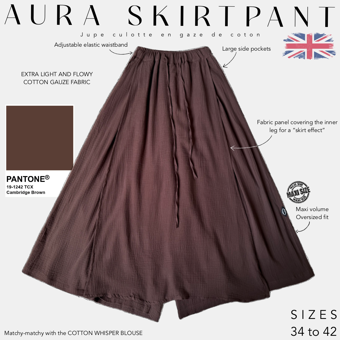Lorsque l’on pense à une tenue estivale idéale, la jupe culotte en gaze de coton vient immédiatement à l'esprit. Cette pièce unique, telle que l’AURA SKIRTPANT, allie esthétique et confort comme peu d'autres vêtements. Conçue pour offrir une alternative moderne et pratique aux traditionnelles jupes et shorts, elle figure parmi les indispensables de la garde-robe.