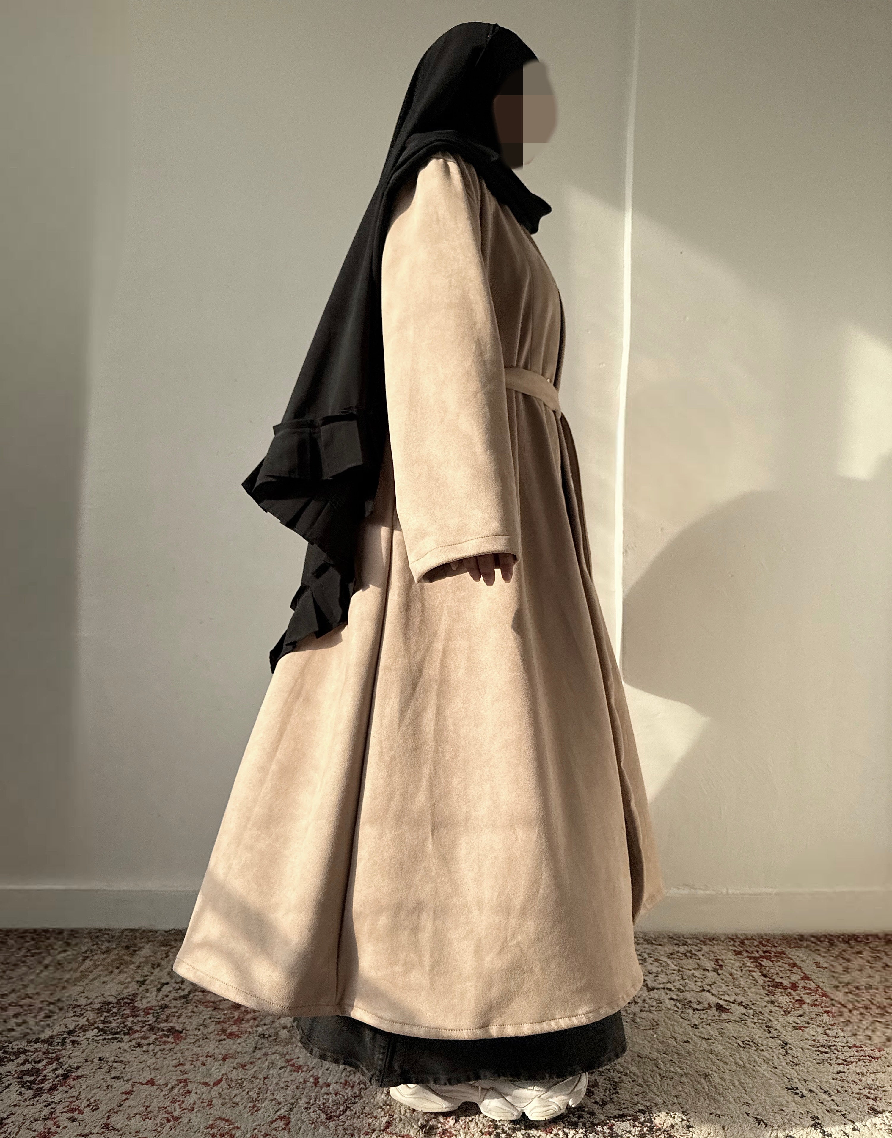 Oui, la suédine semi-épaisse retient bien la chaleur tout en restant respirante. Il est idéal pour l’automne, le début de l’hiver ou les soirées fraîches. En cas de températures plus basses, il peut se superposer facilement sur une maille épaisse ou une abaya doublée.