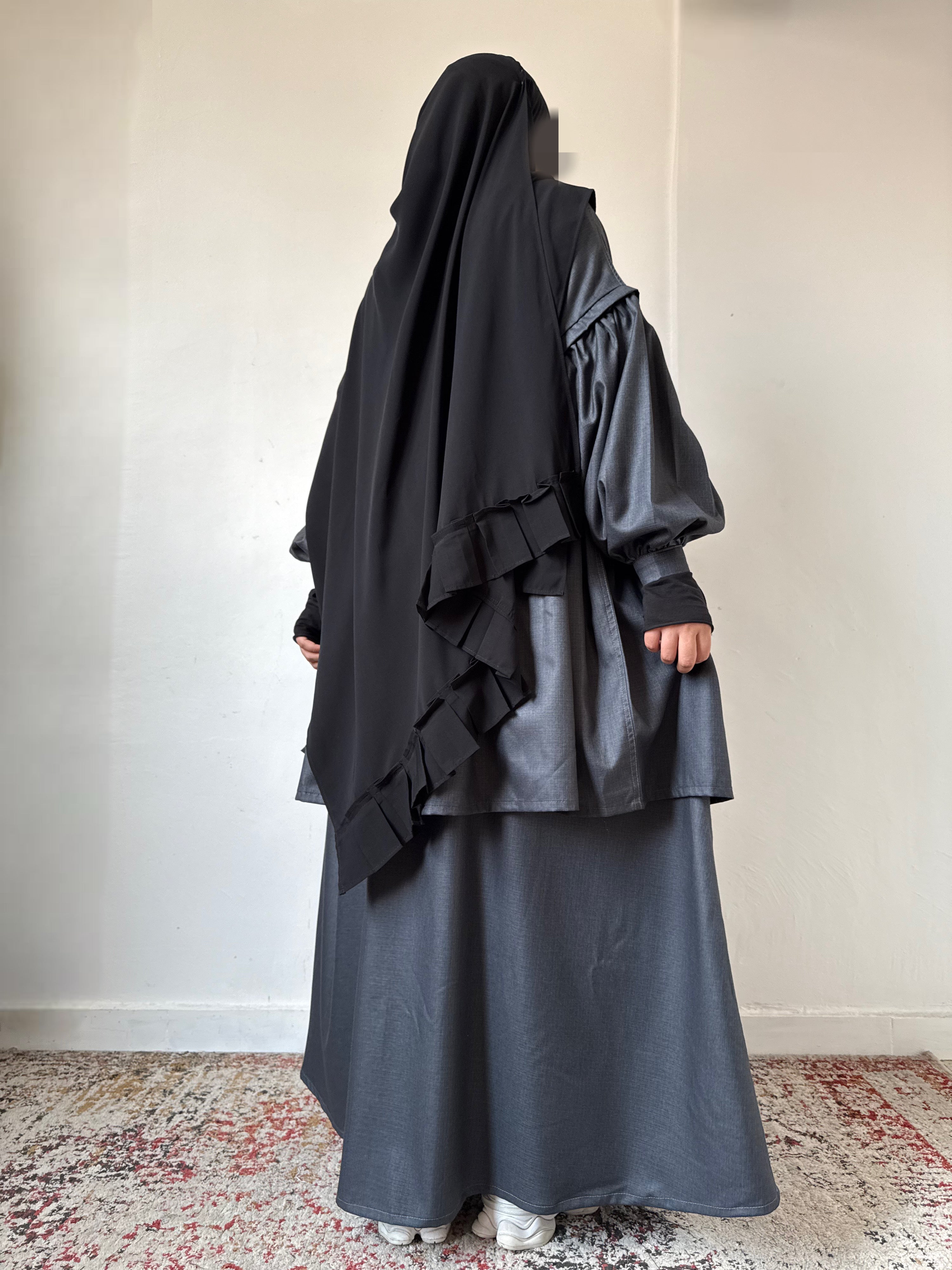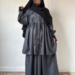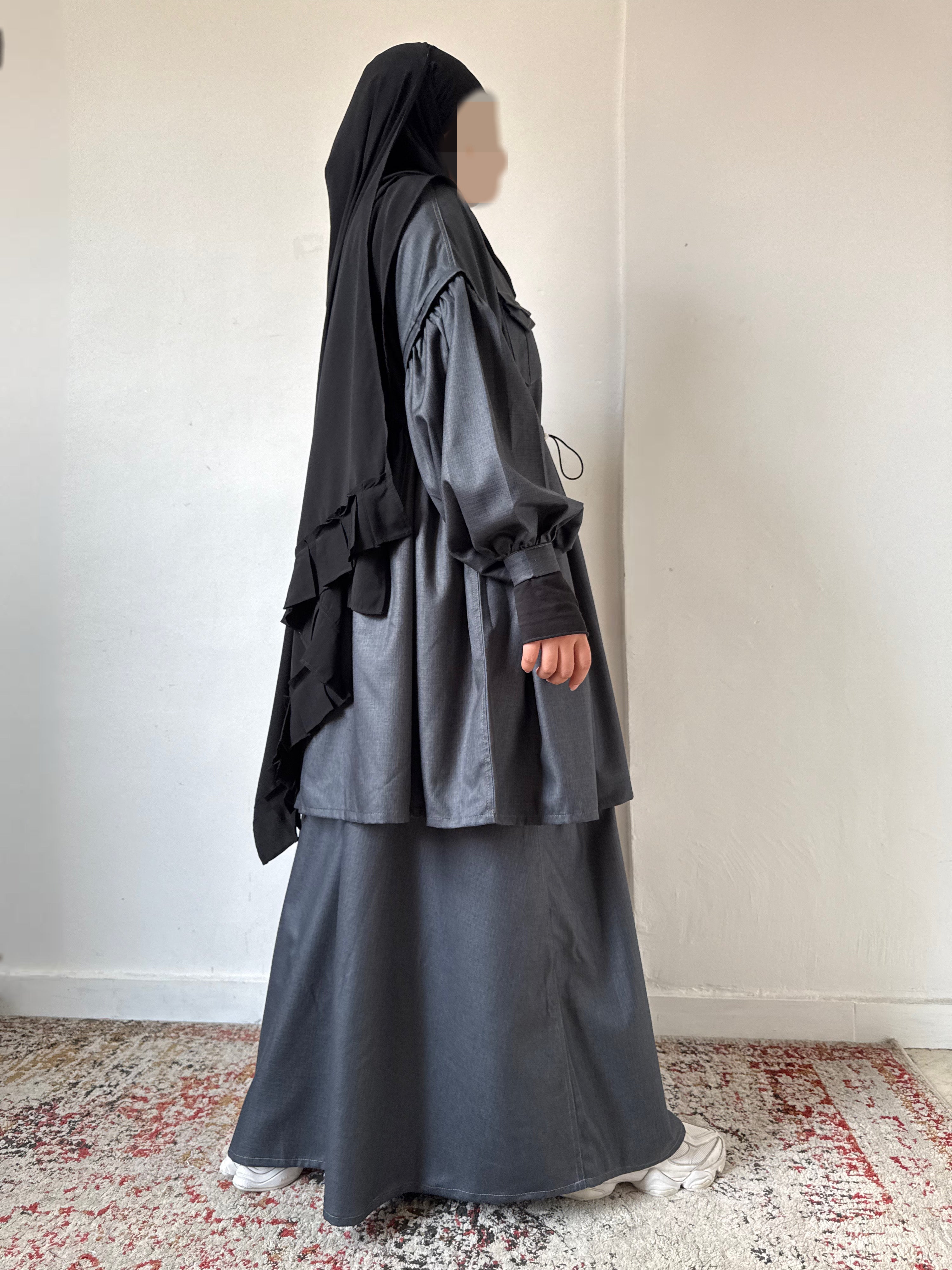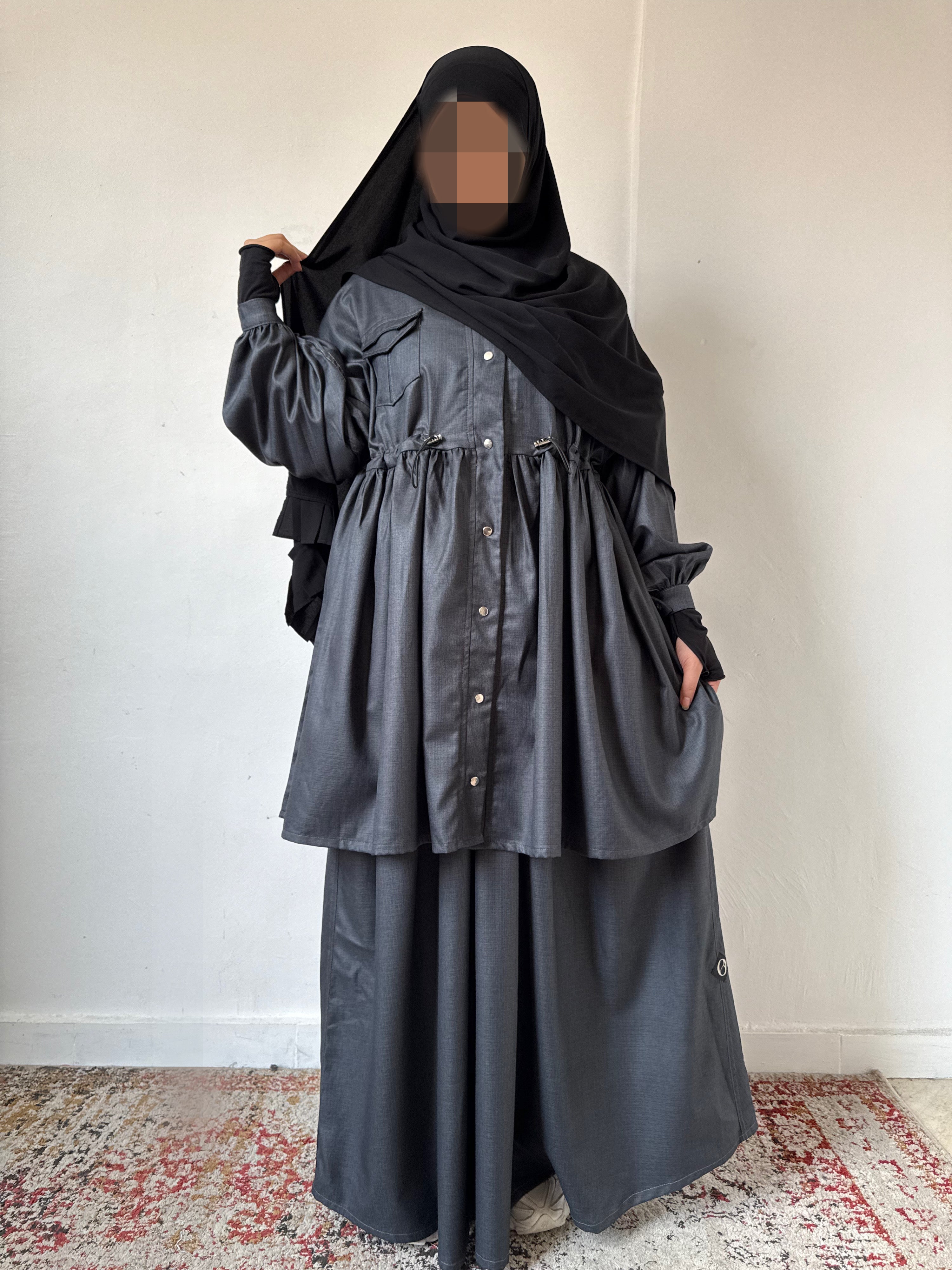 Je voulais créer une pièce à la fois structurée et fluide, capable de s’adapter à chaque moment de la journée, tout en respectant les codes de la modest fashion.