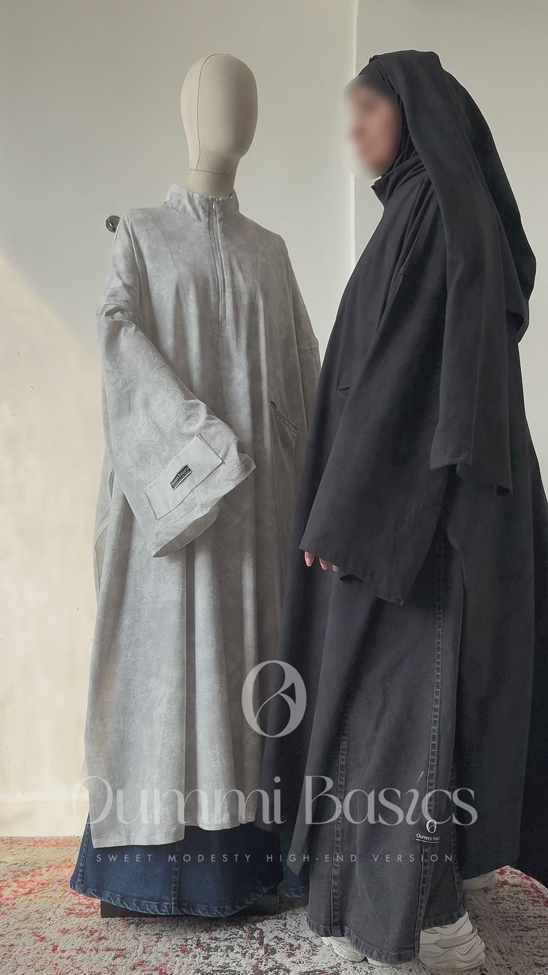 • Capuche-hijab amovible (permet de bien couvrir vos épaules, se porte au dessus de votre voile habituel : hijab, khimar …)