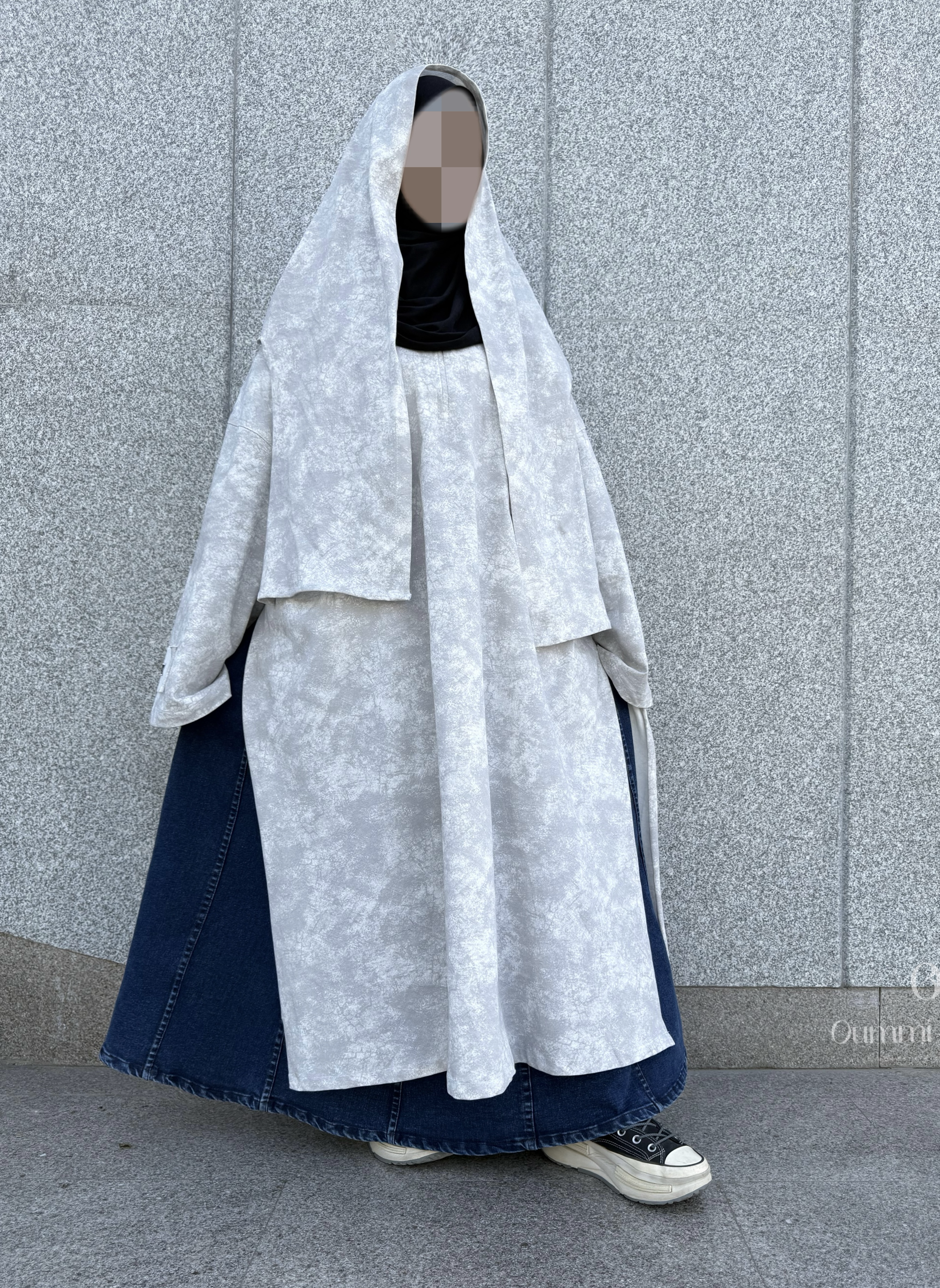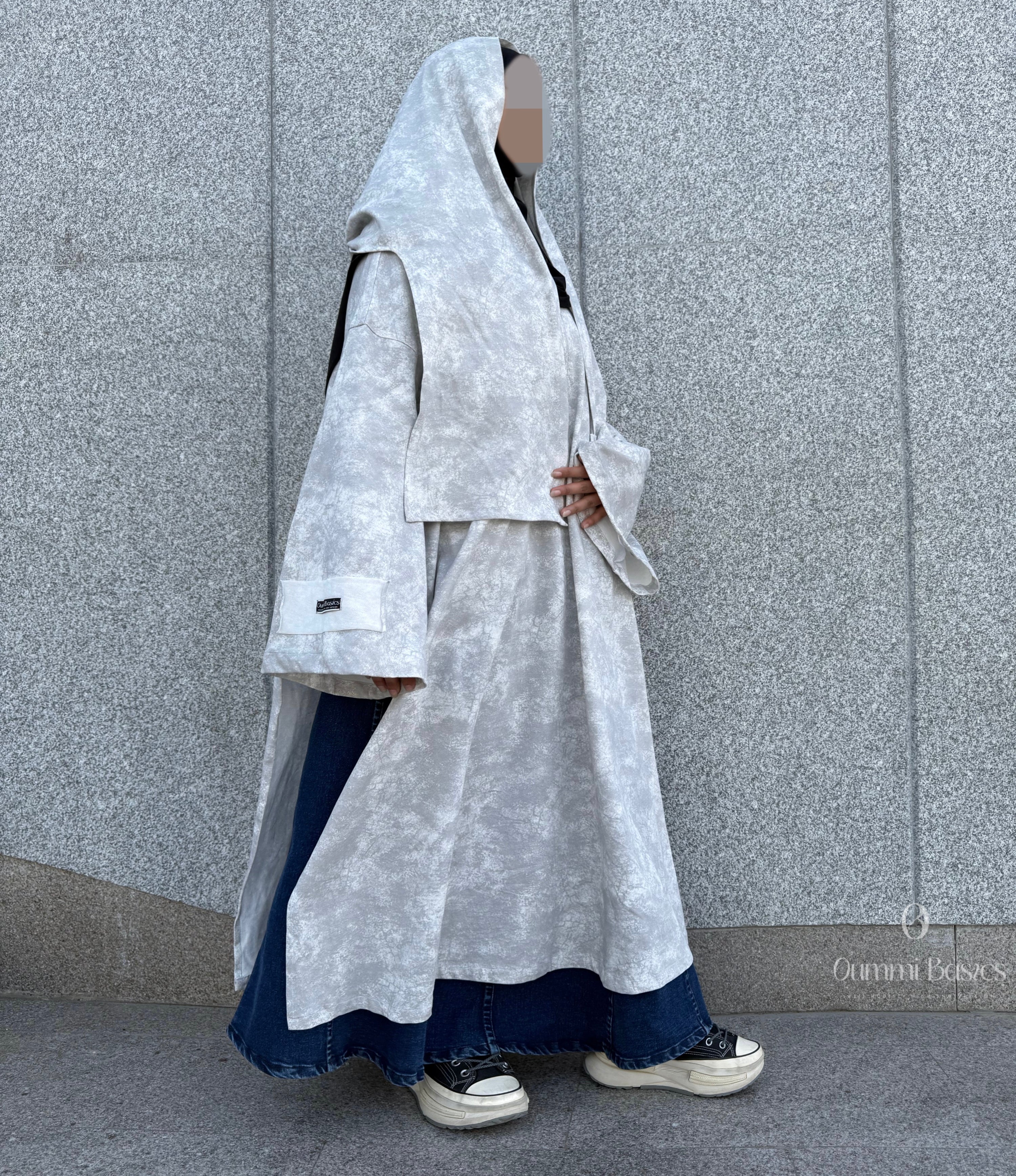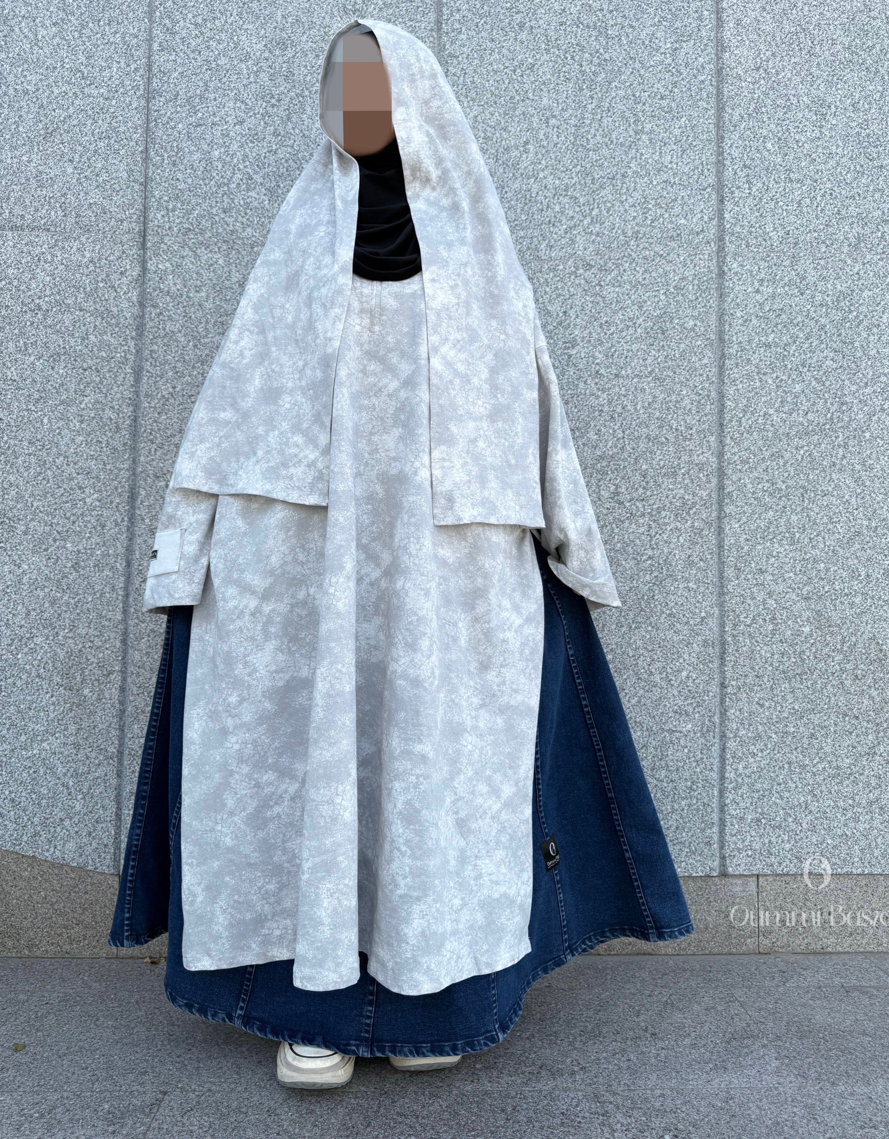 • Capuche-hijab amovible (permet de bien couvrir vos épaules, se porte au dessus de votre voile habituel : hijab, khimar …)