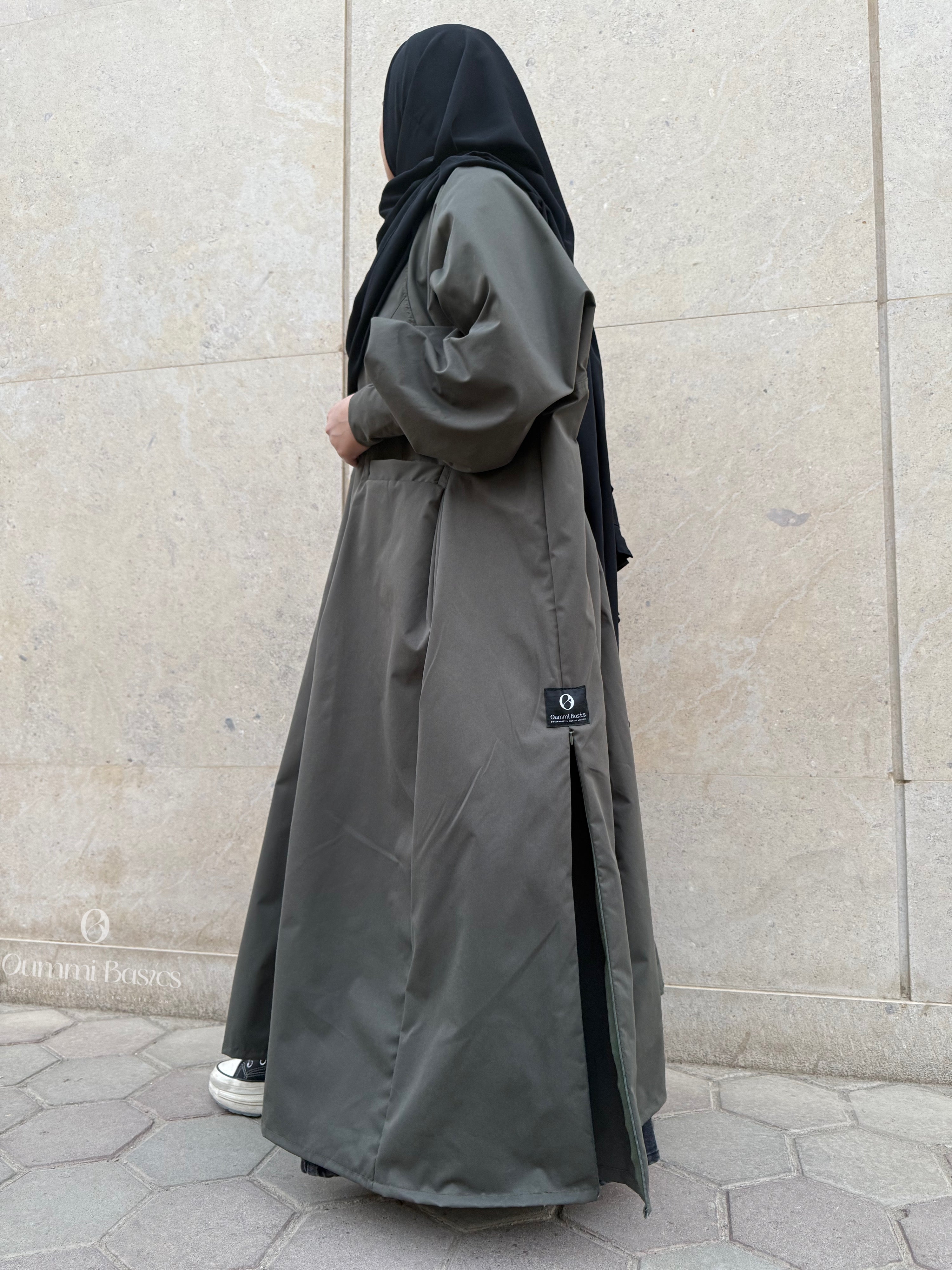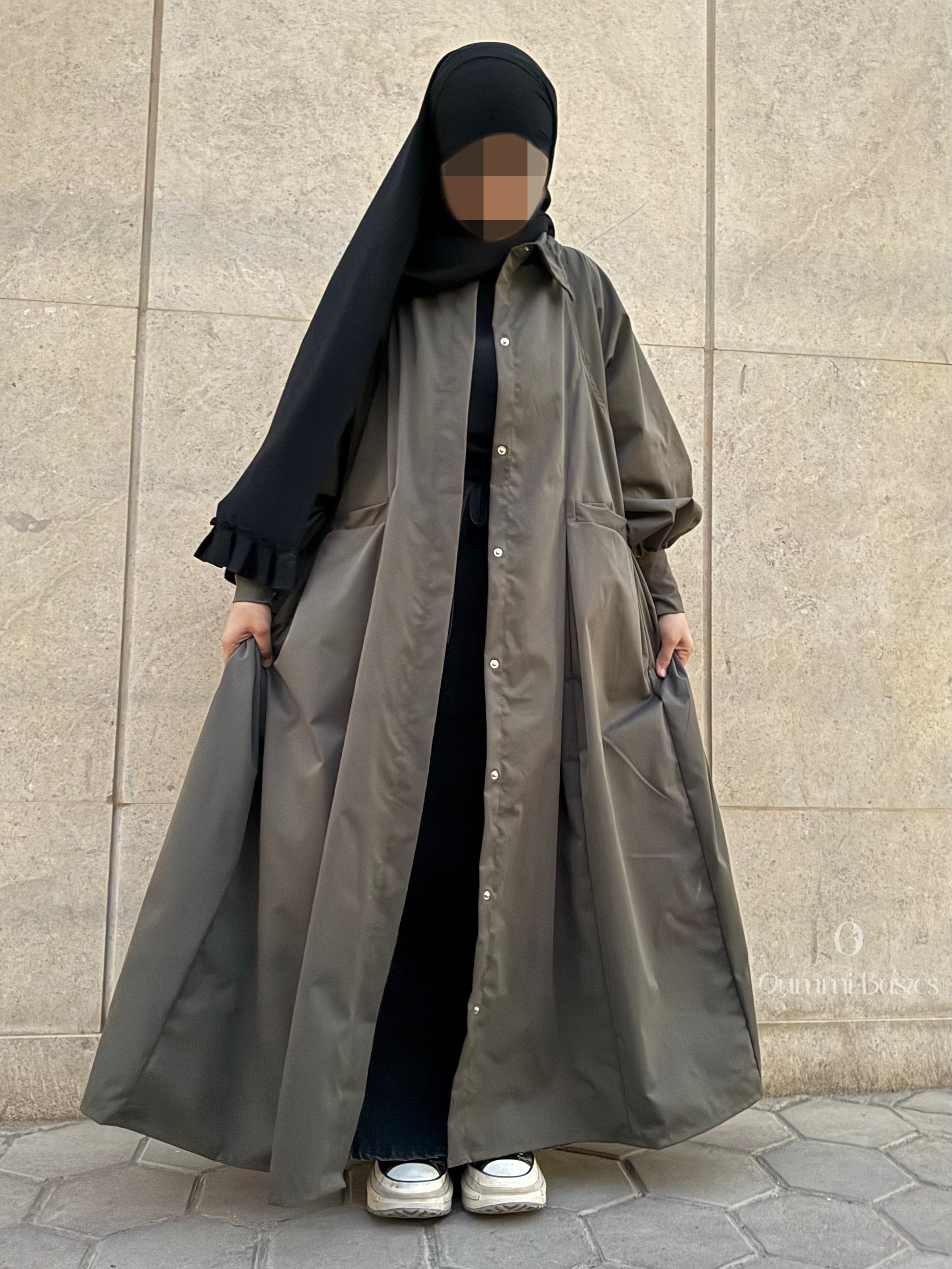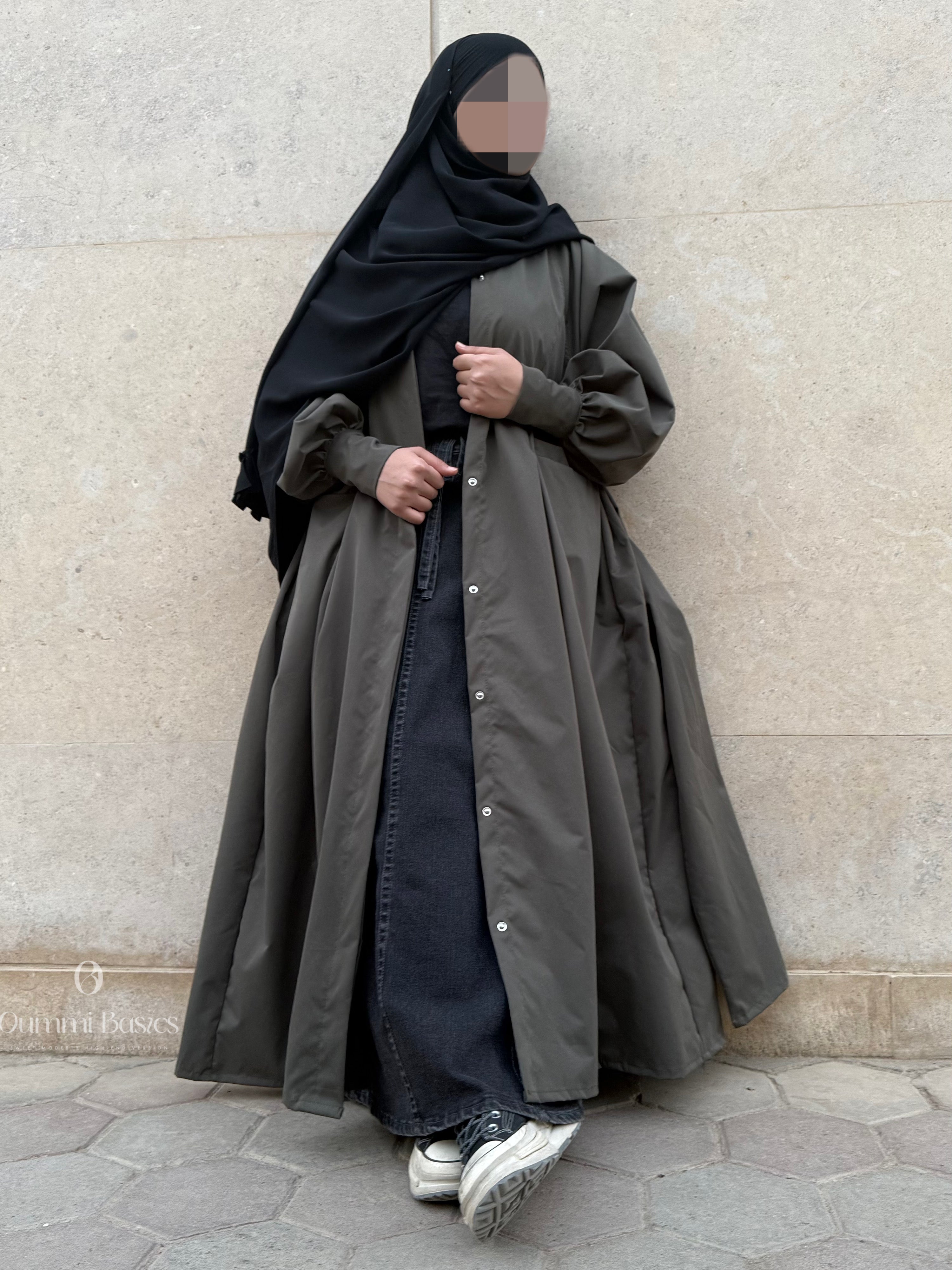 Oui, absolument. Sa coupe oversize et ses fentes zippées permettent de superposer facilement même avec les plus larges tuniques et abayas.