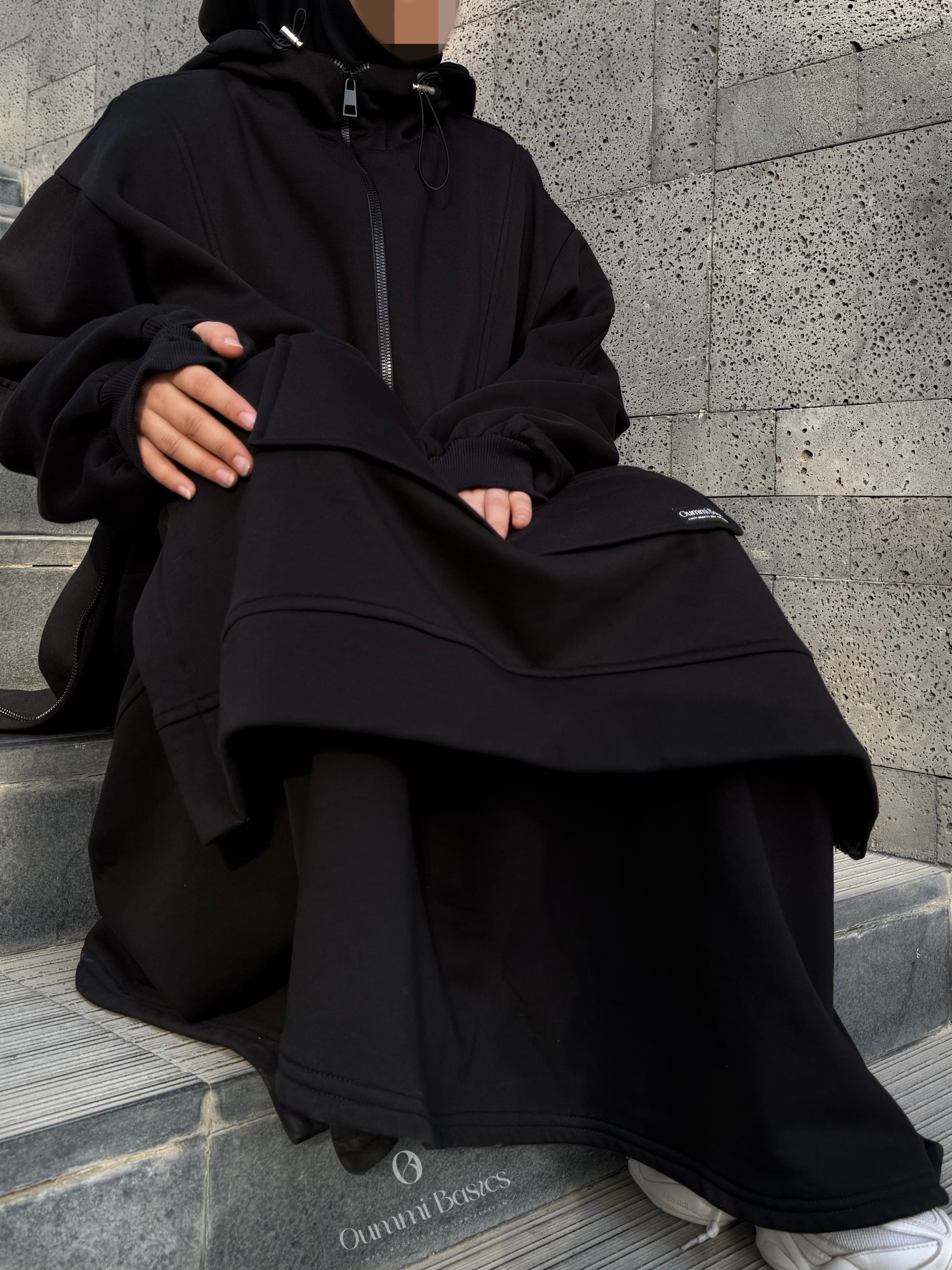 C’est LE sweat à capuche modeste de rêve ! Cette pièce est comme à notre habitude confectionnée dans un tissus de haut standard, niveau design elle est pleine de détails pratiques et sa coupe est minutieusement élaborée.
