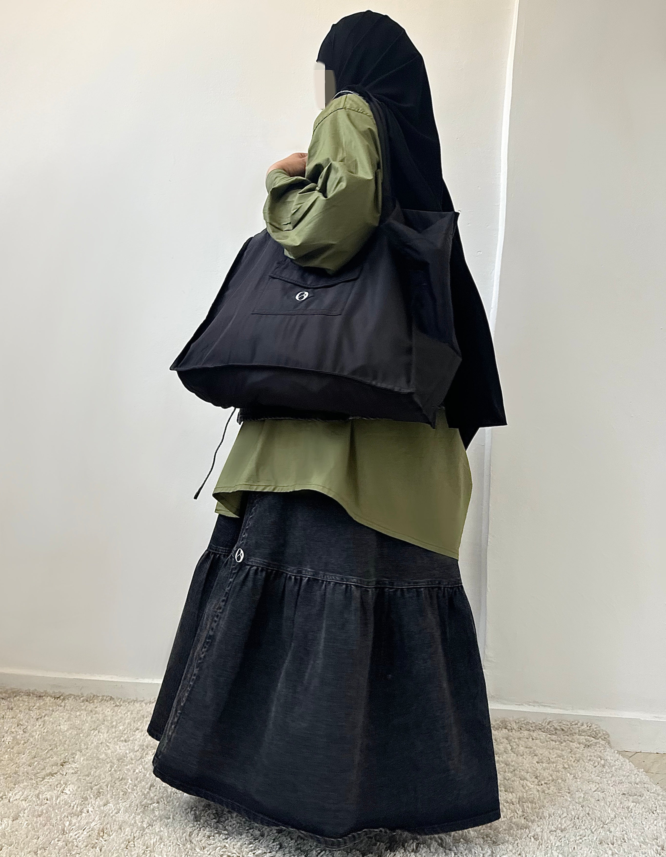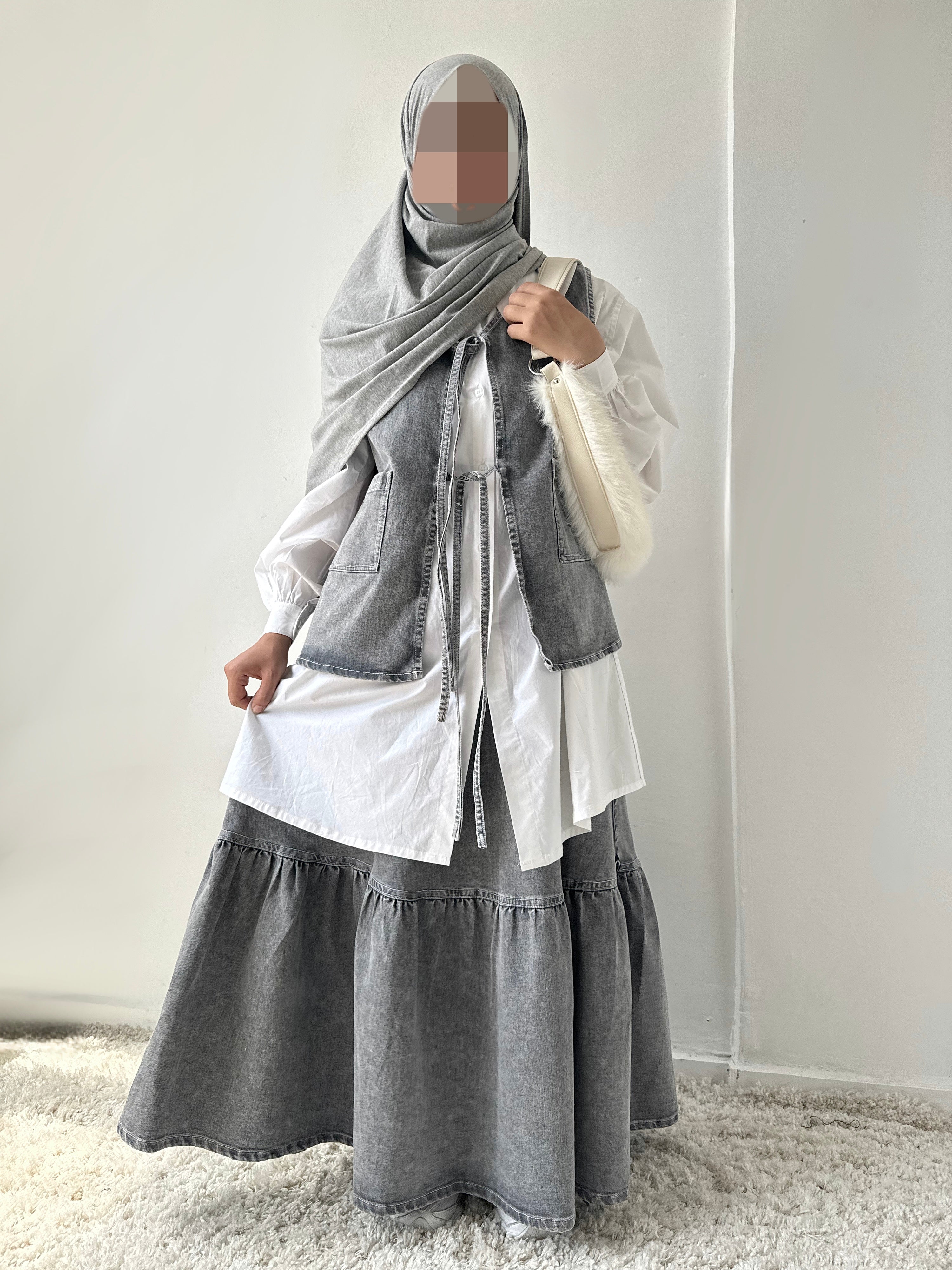 Diese Art von Kragen wirkt besonders schmeichelhaft, wenn sie mit anderen Accessoires kombiniert wird, wie zum Beispiel einer dünnen Halskette für zu Hause oder einem Hijab für draußen. Durch das Experimentieren mit diesen Kombinationen können Sie die weiblichen Vorzüge der übergroßen Bluse voll zur Geltung bringen.
