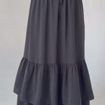 Ein bis ins kleinste Detail ausgearbeiteter doppelter Baskenrock, der Ihren Blusen und Tuniken Eleganz und Weiblichkeit verleiht.