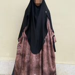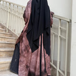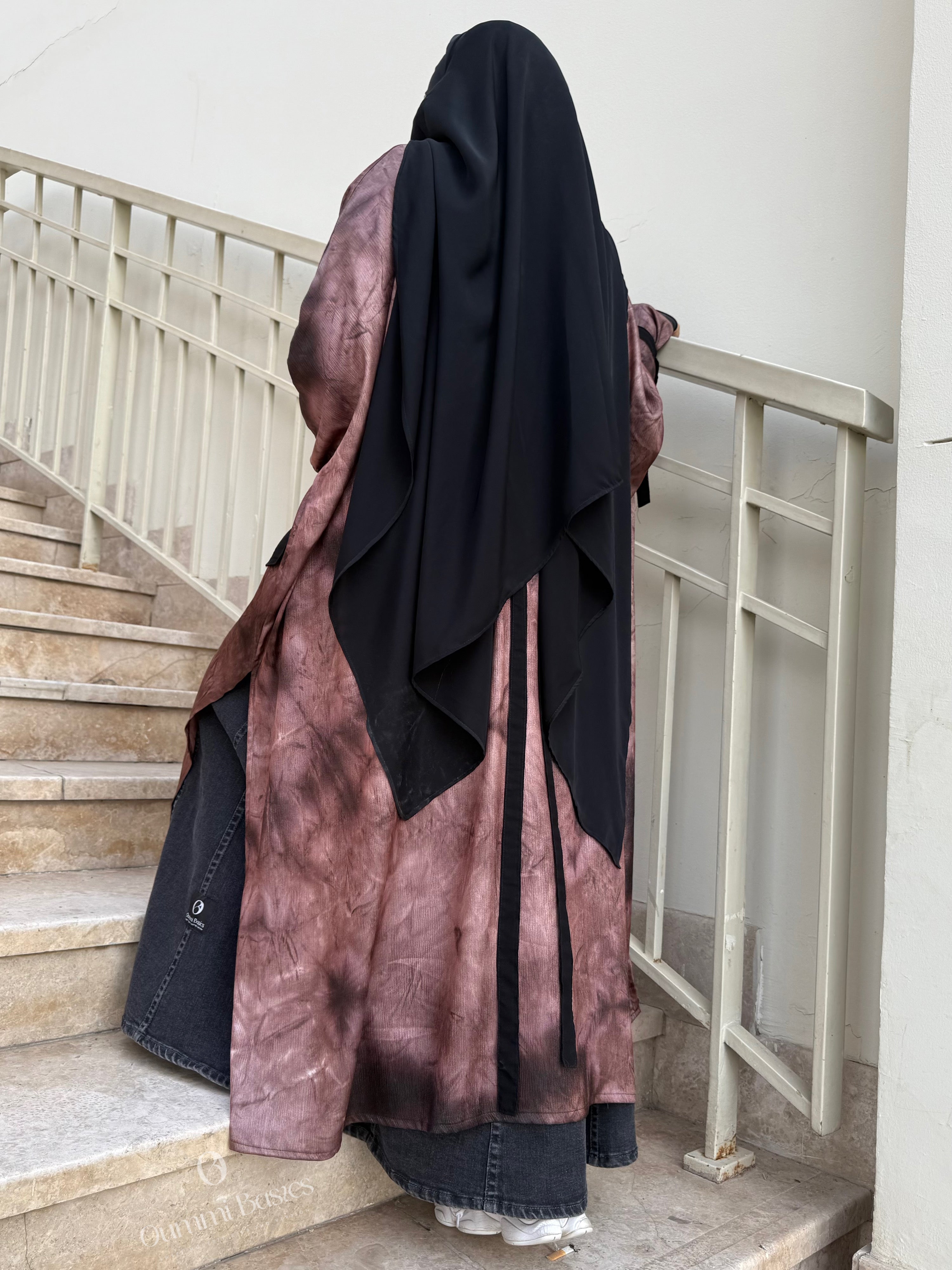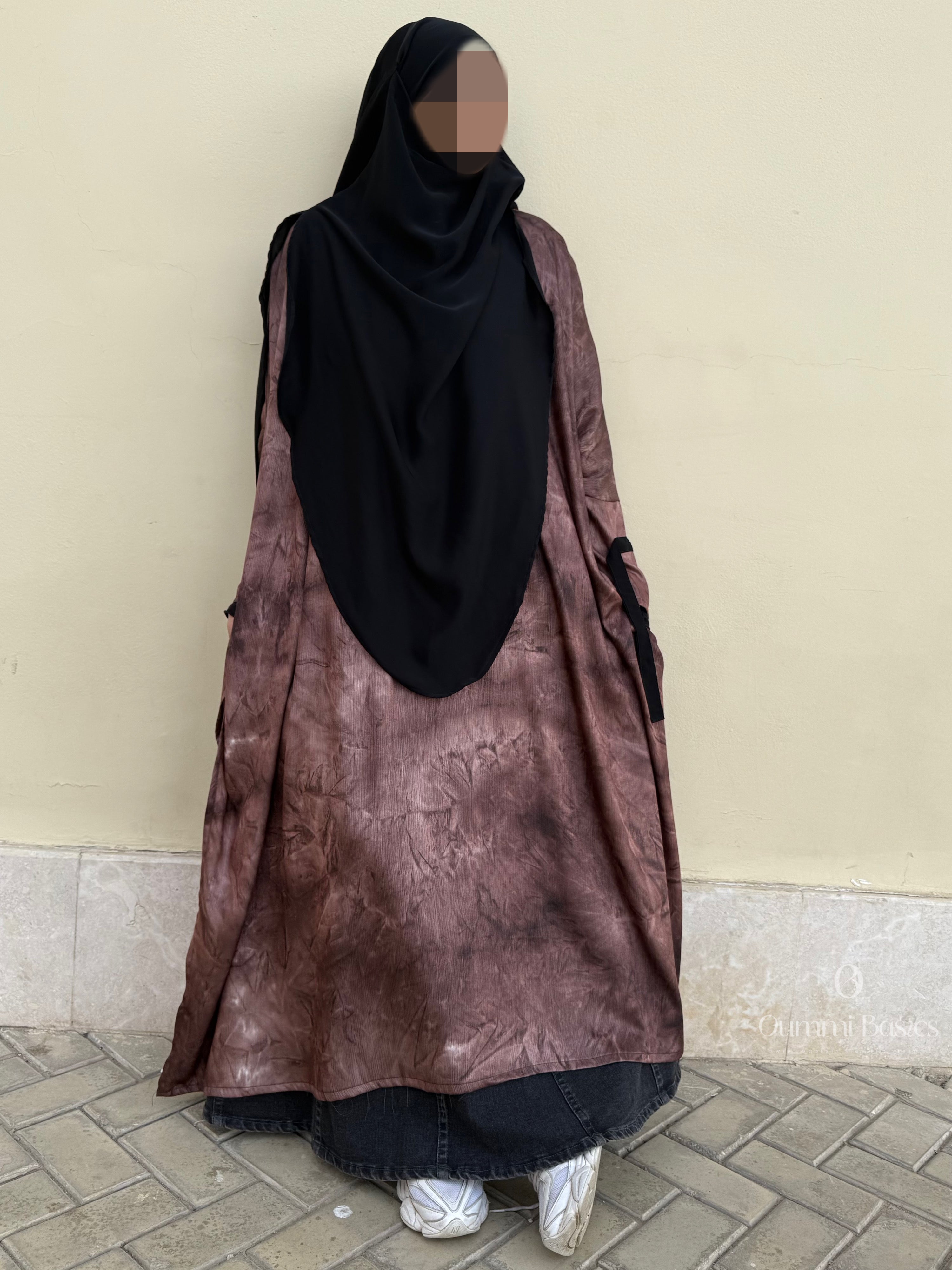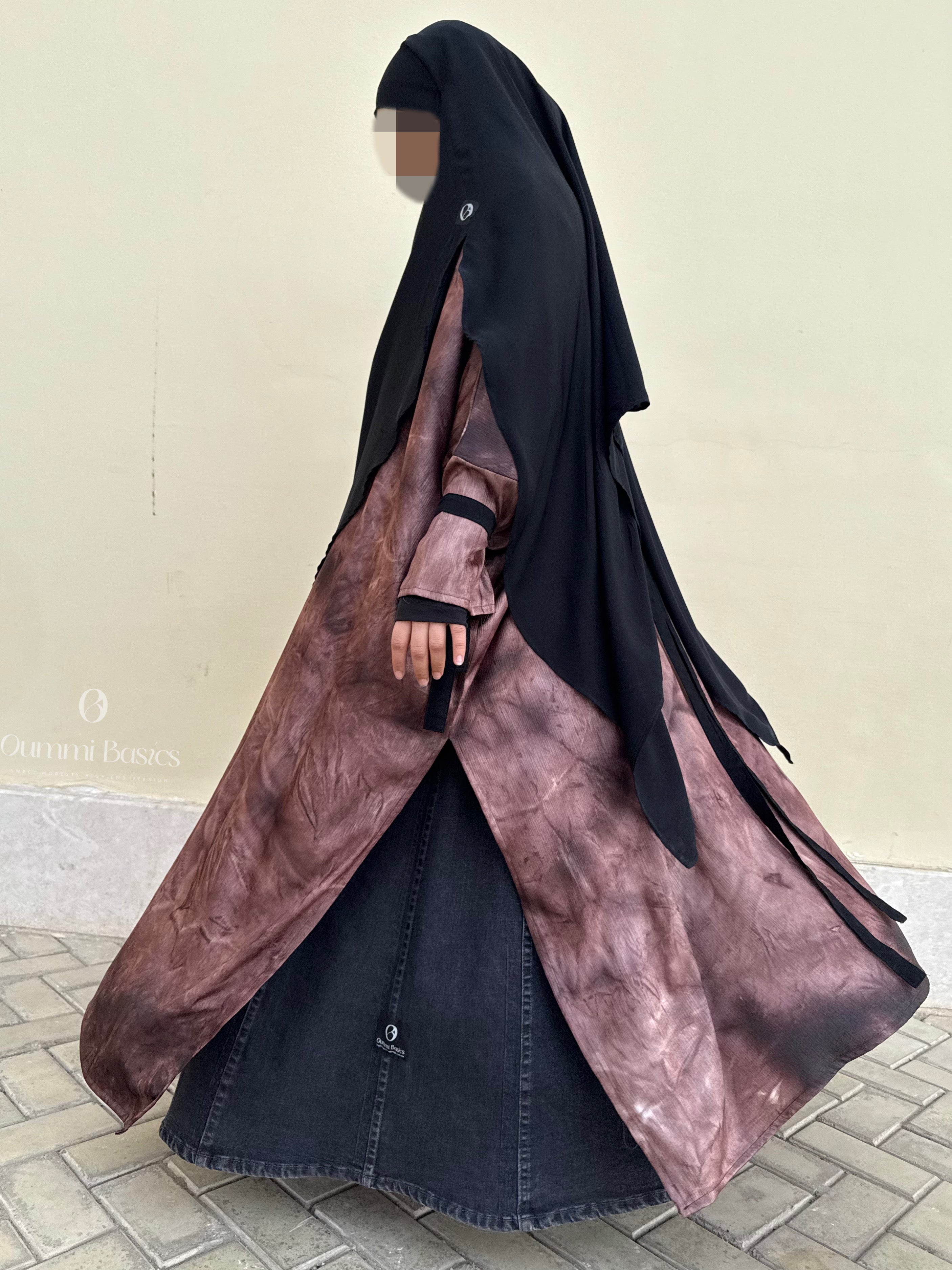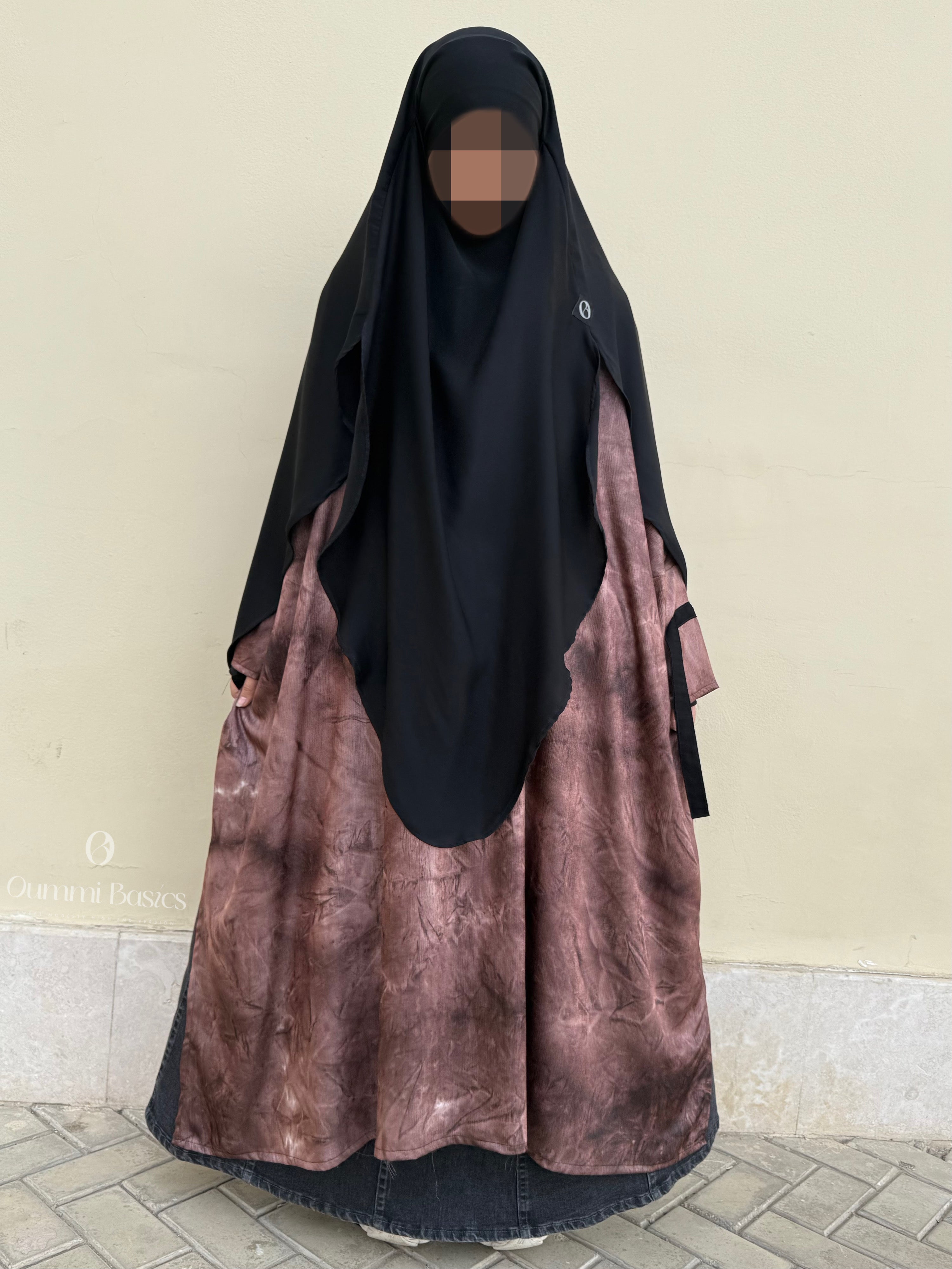 Tragen Sie es mit einem Jeansrock für einen lässigen und dennoch eleganten Look oder entscheiden Sie sich für einen koreanischen Seidenrock, der zum Stoff der schwarzen Träger passt. Wer es dezenter mag, kombiniert diese Tunika mit einem koreanischen Seiden-Khimar oder Hijab und schafft so ein harmonisches und elegantes Ensemble.