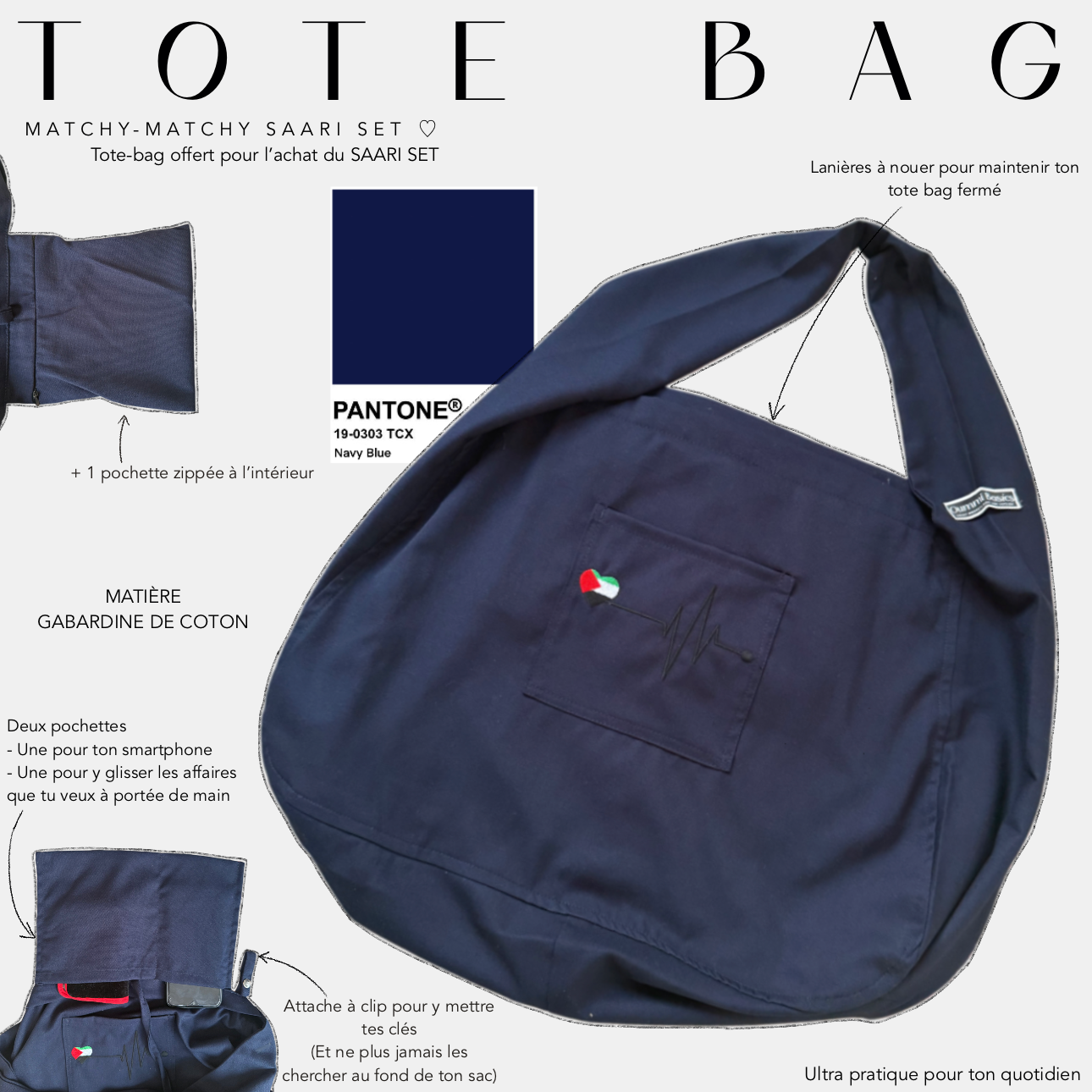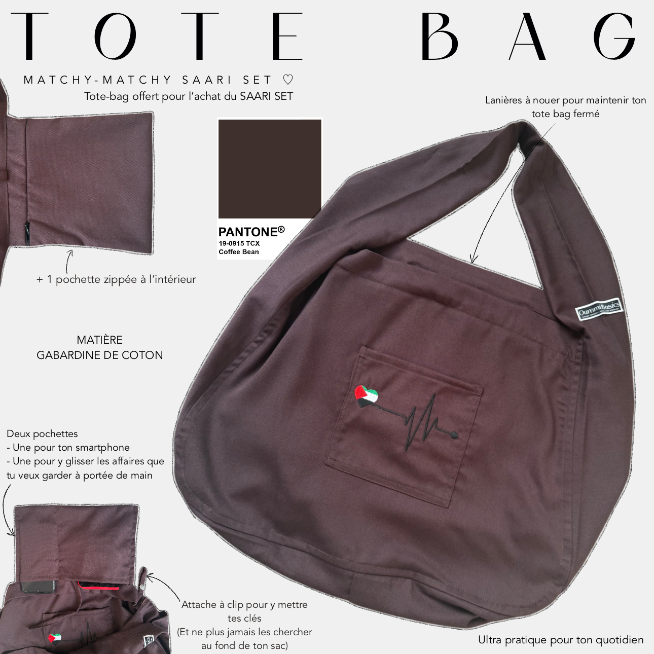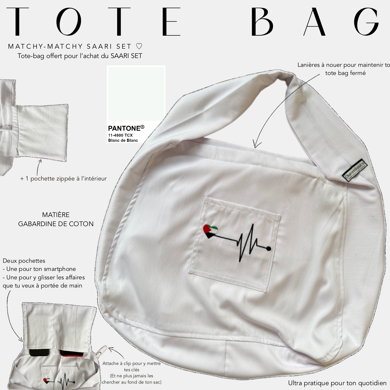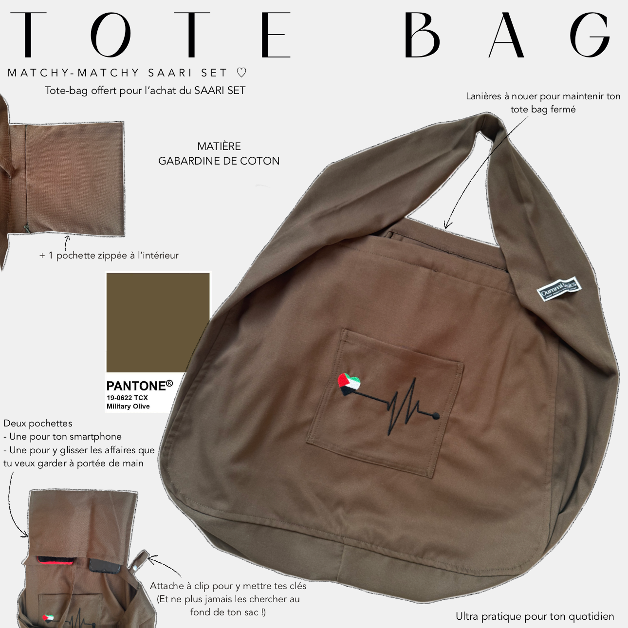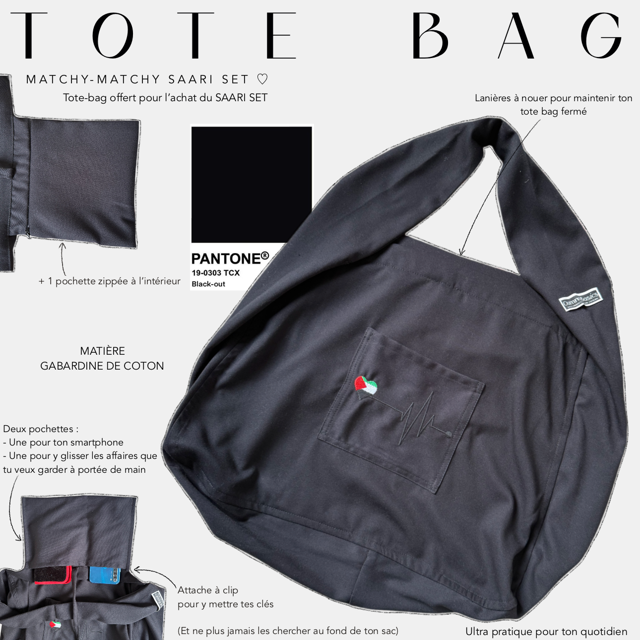 When you purchase the SAARI SET, this tote bag is free: simply add it to your basket to complete your set with a useful and committed accessory.