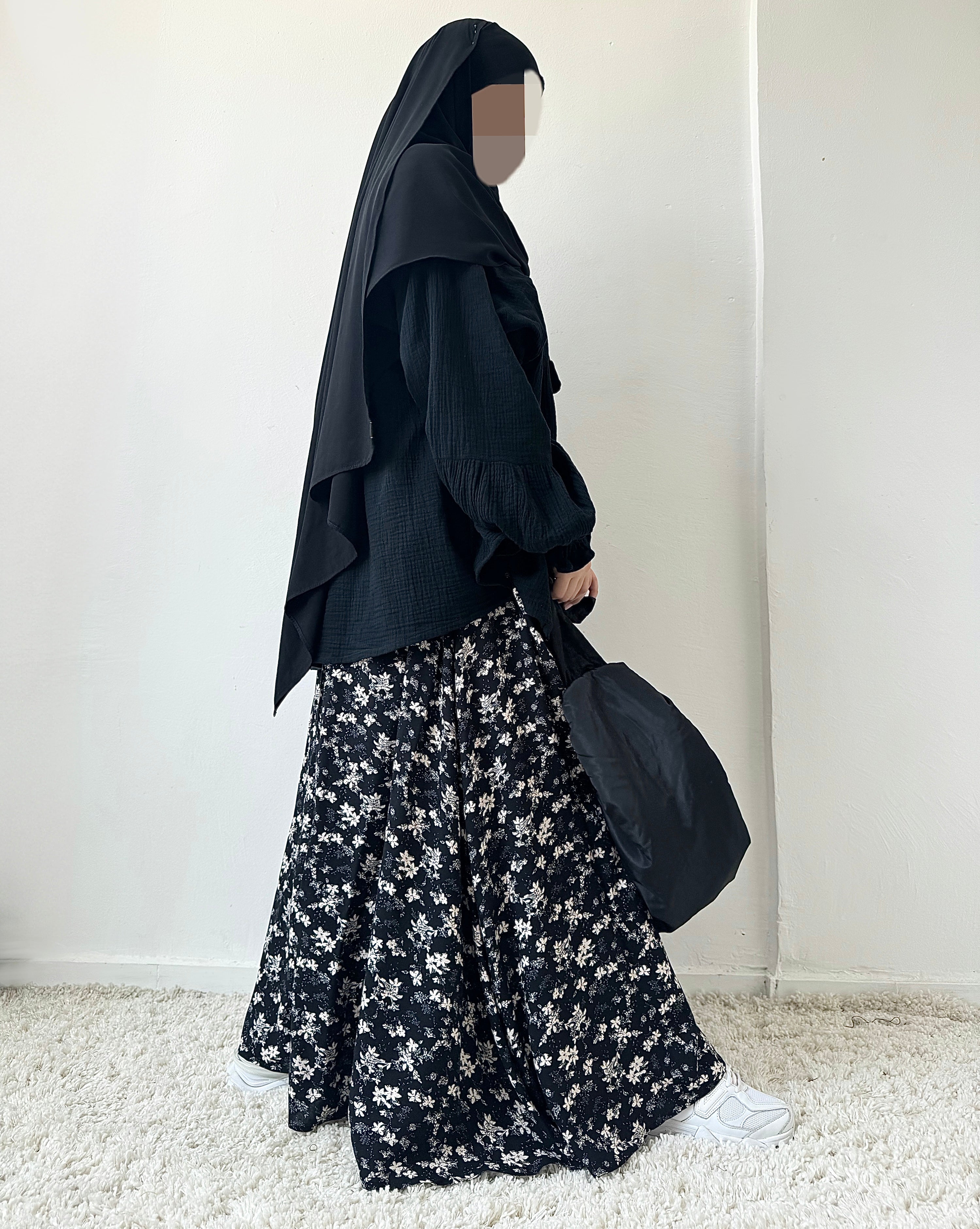 Finally, a modest floral skirt, the BLOOM SKIRT is coming to your wardrobe for spring! It can be worn outdoors with a long tunic with slits, or even at home! With its extra soft material and its lining + its clever details, you won't get tired of it anytime soon!😍