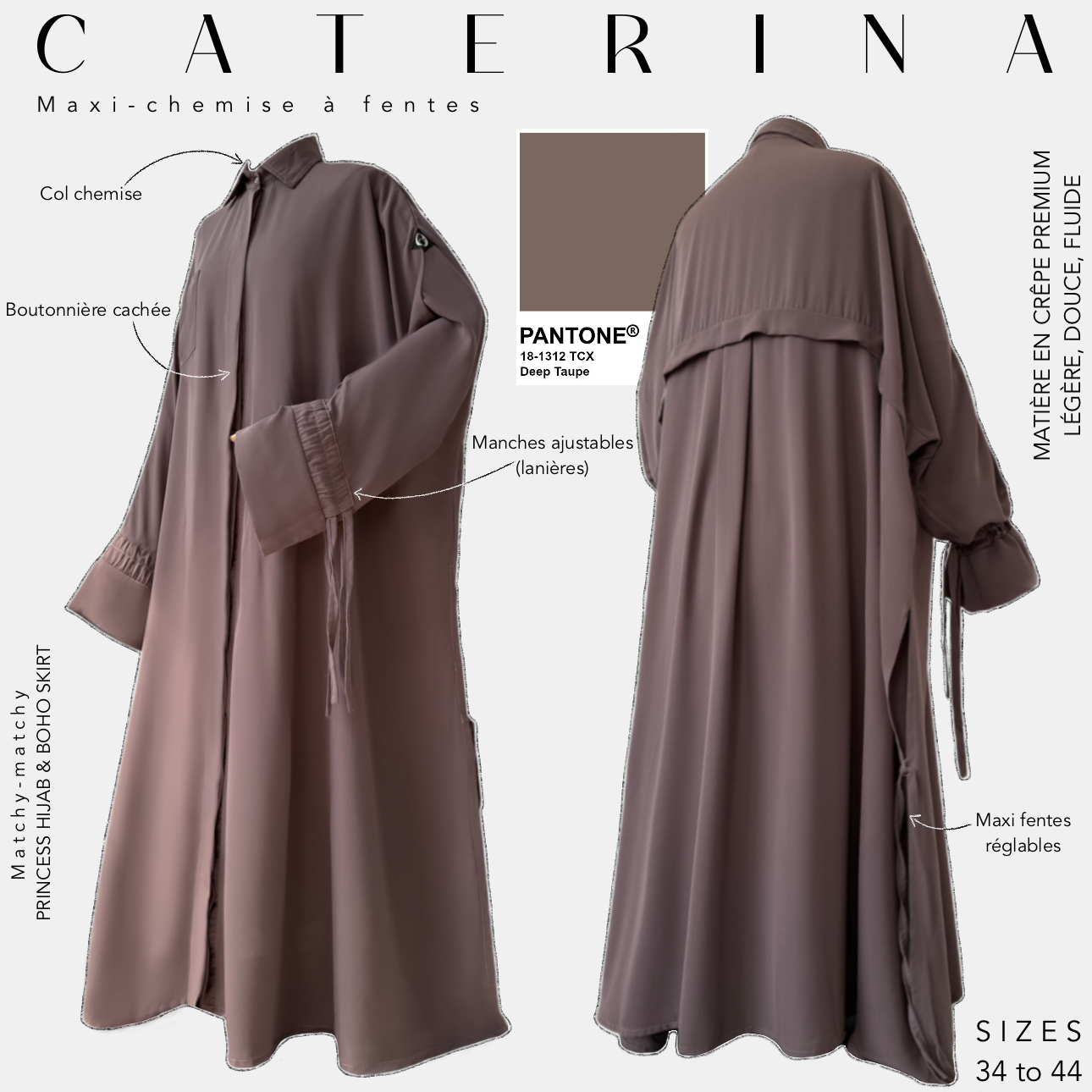 We start with its shirt collar which dresses CATERINA in elegance and simplicity. This characteristic of the shirt will earn it its place as the ideal piece for dressing elegantly and soberly during events between women or even for showing off without overdoing it and without compromising on the comfort that we appreciate so much.