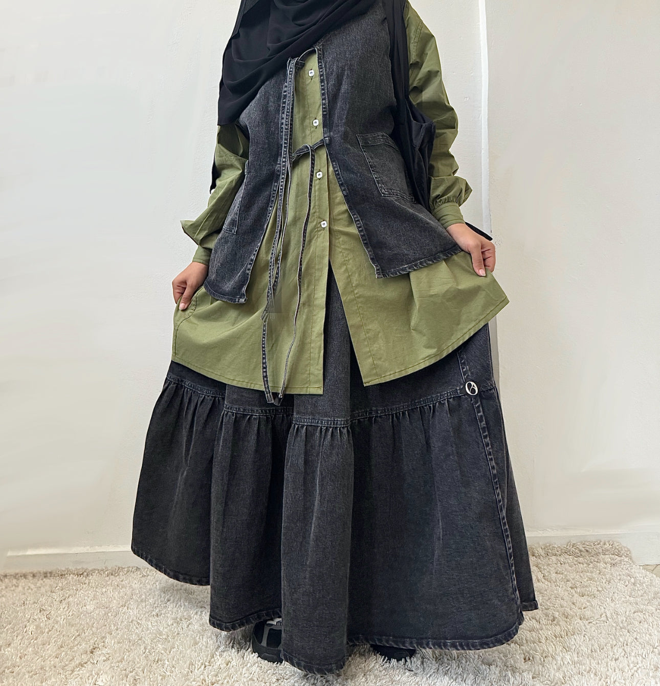 Jupe longue en jean « GATHERED DENIM SKIRT » - OUMMI BASICS