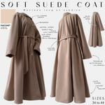 Le SOFT SUEDE COAT a été pensé comme une seconde peau de douceur : un manteau à la fois structuré et enveloppant, capable d’allier élégance, pudeur et confort.