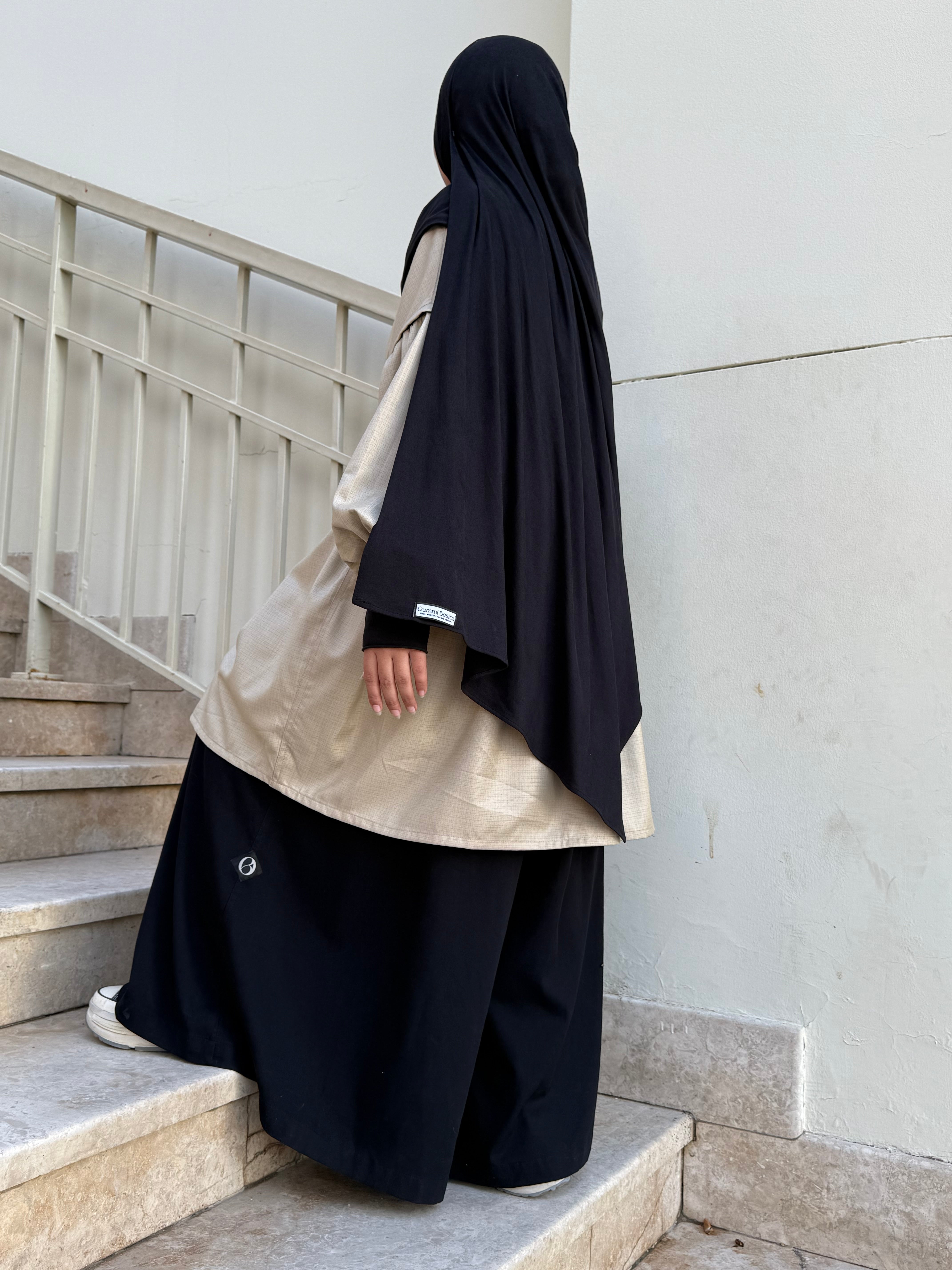 C’est la pièce idéale pour les femmes qui recherchent couvrance, élégance et facilité d’association. Il se porte aussi bien avec une tunique longue, un kimono ou une abaya ouverte.